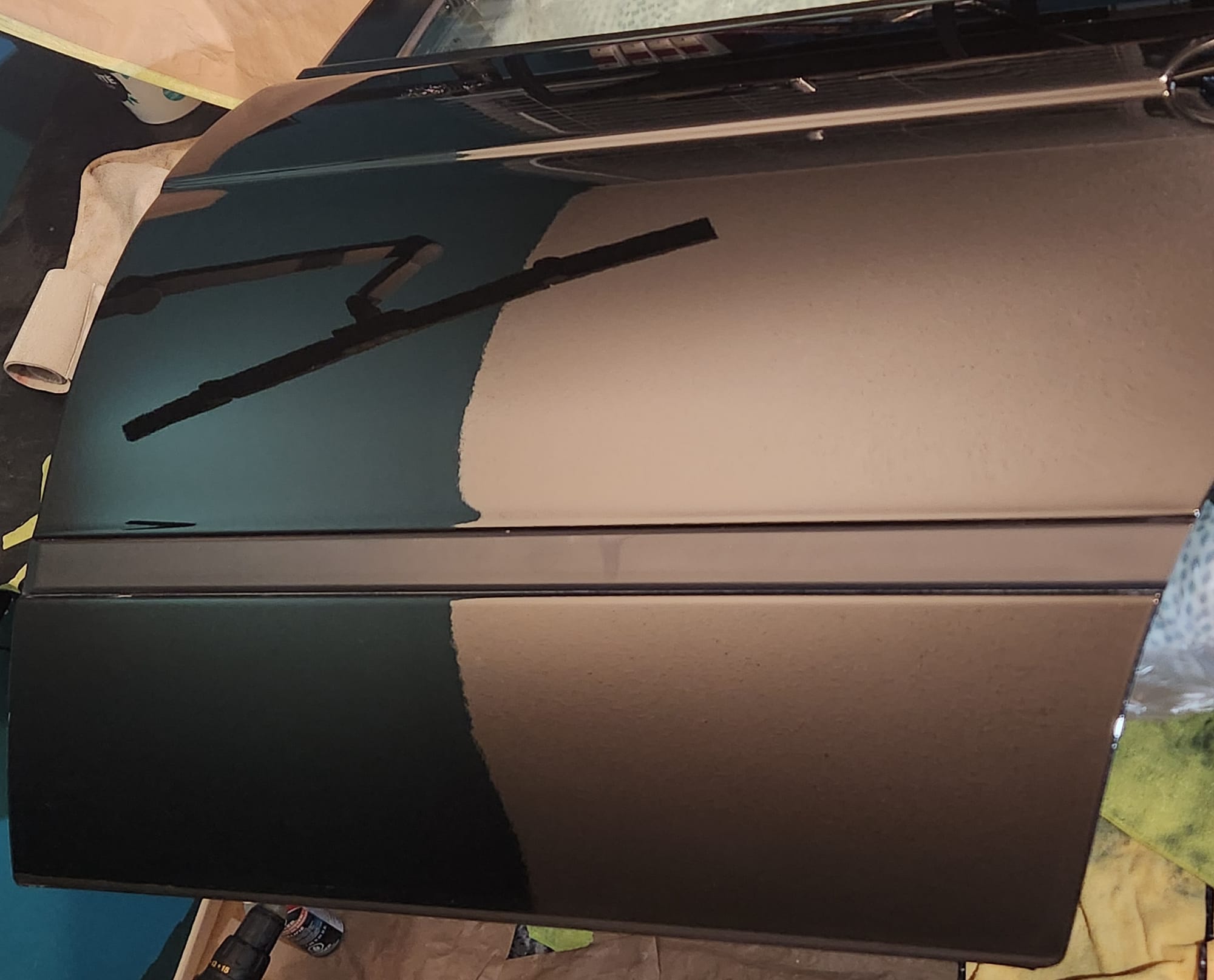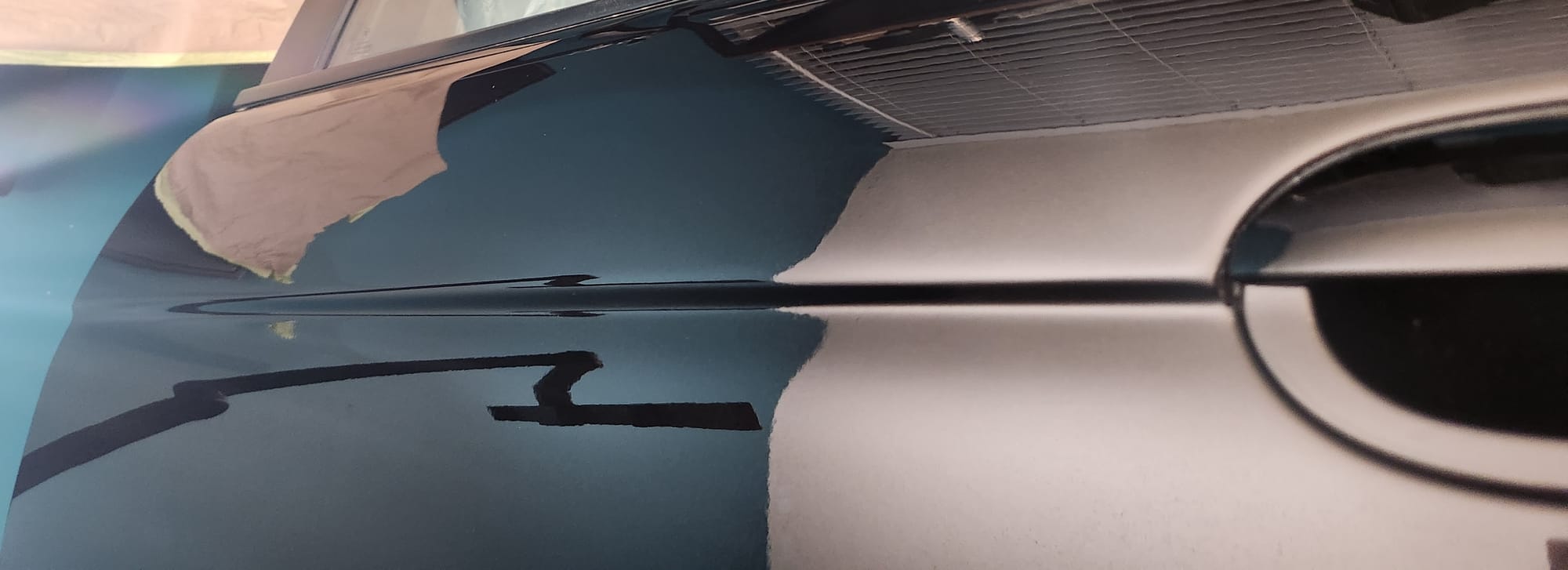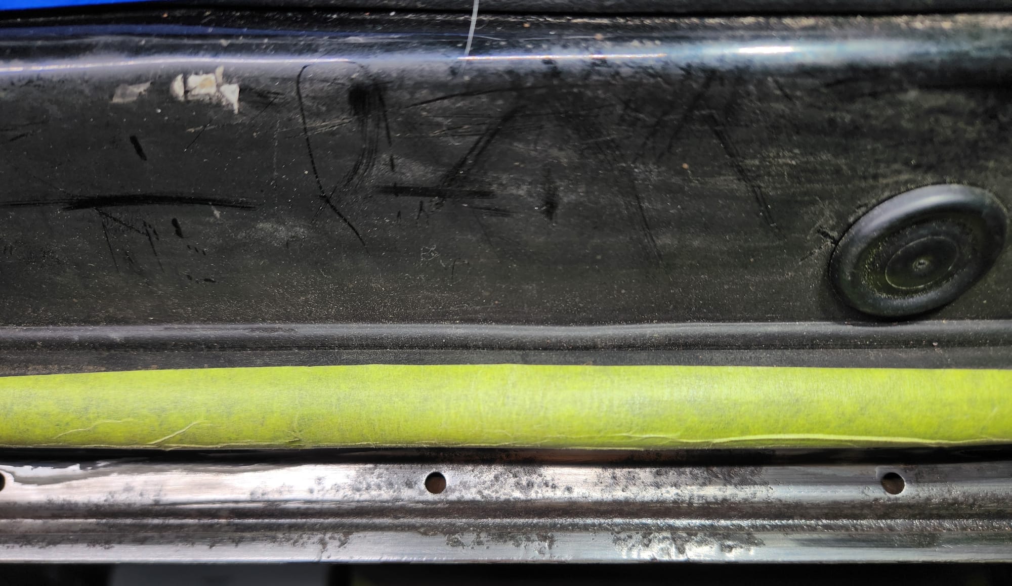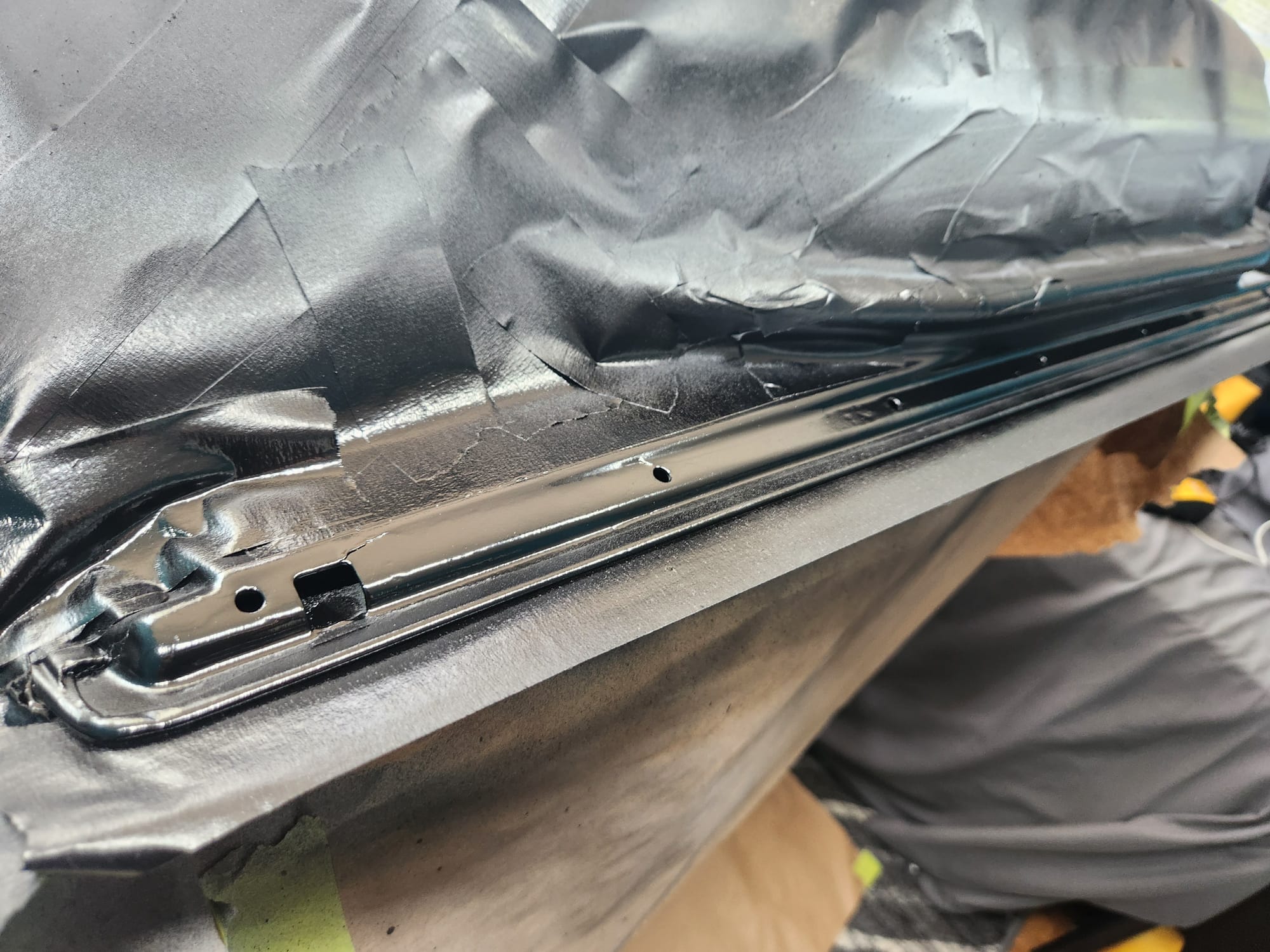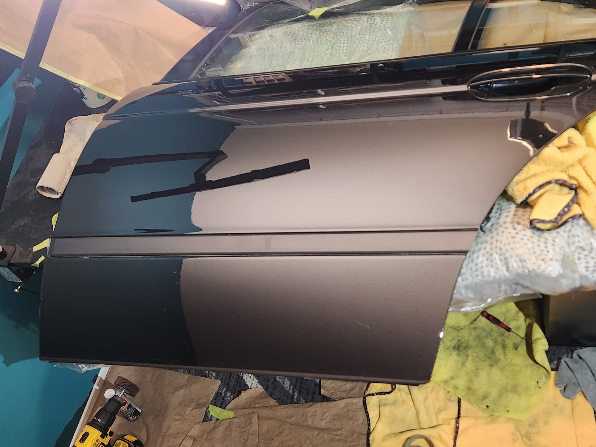 - Inspecting the Other Side: Flipped the door over for a closer inspection. While rust wasn't a major issue, there were scratches I aimed to remove. Noticed running clear coat, suggesting a previous repaint, which I planned to correct with wet sanding to address both the scratches and the uneven clear coat.