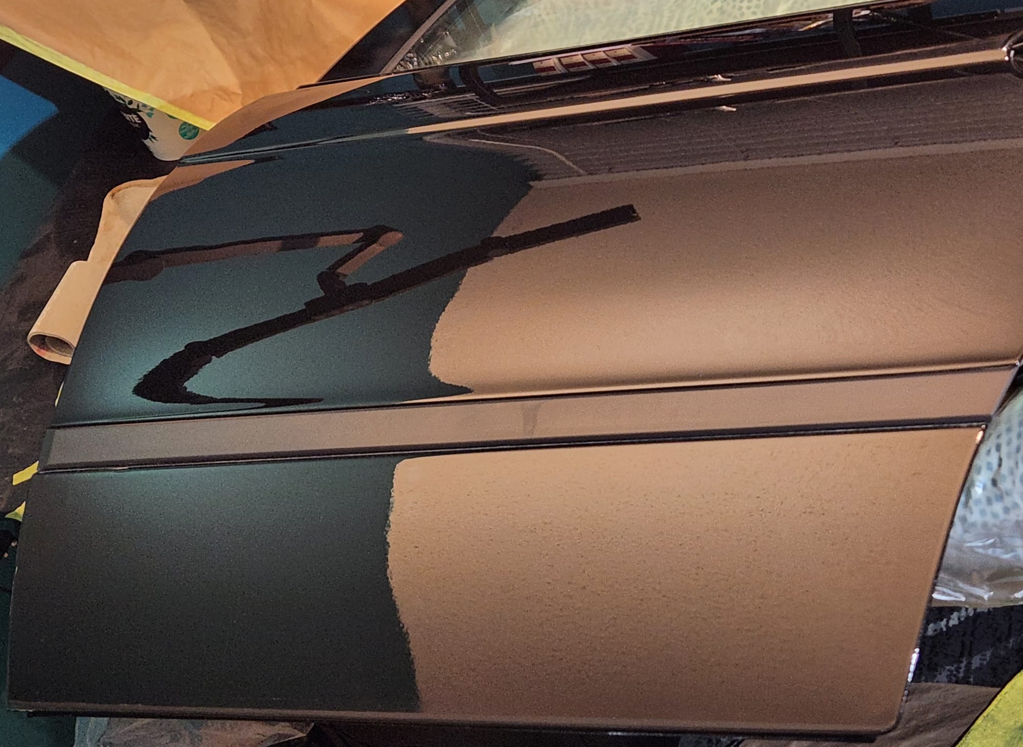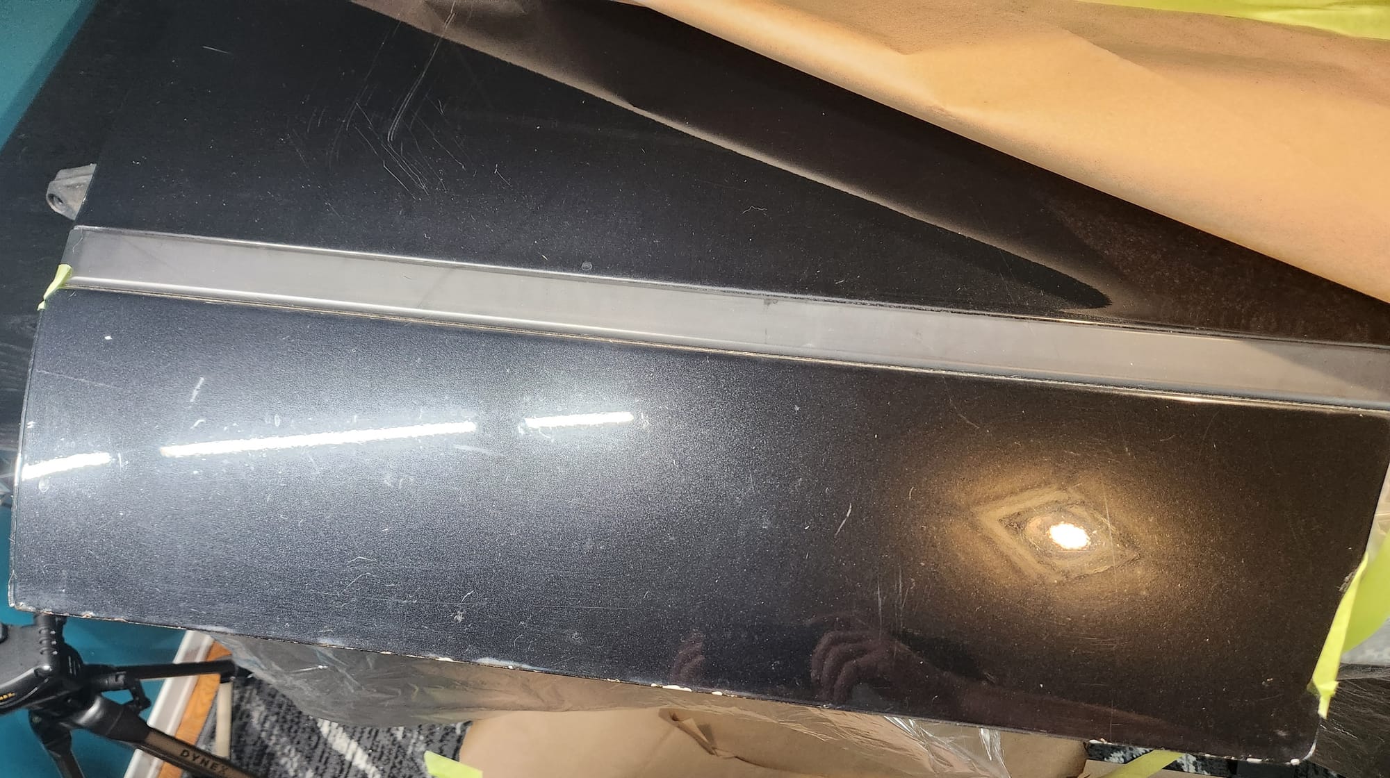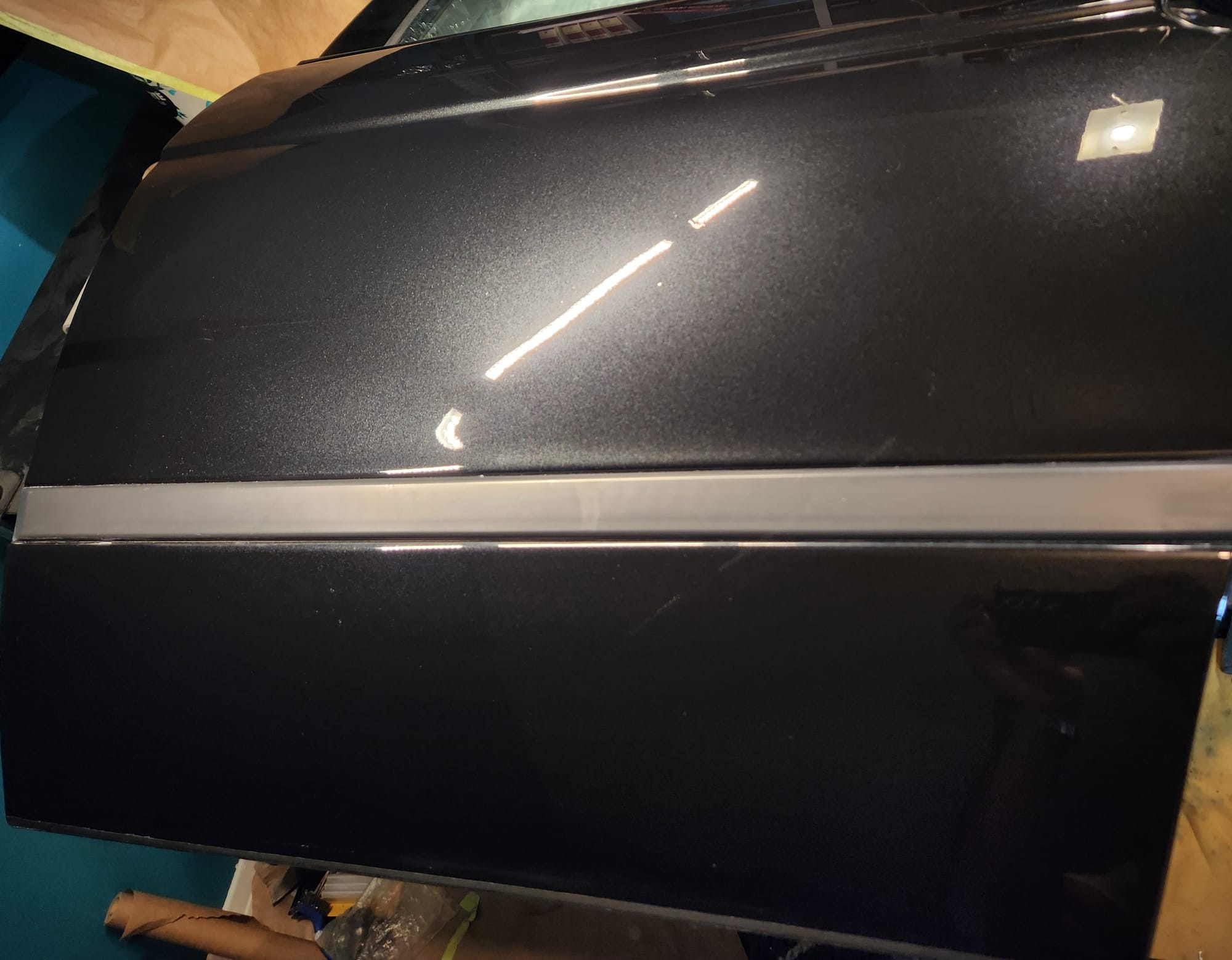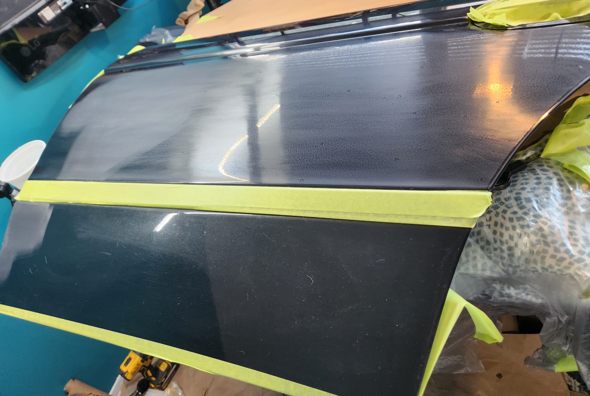 - Inspecting the Other Side: Flipped the door over for a closer inspection. While rust wasn't a major issue, there were scratches I aimed to remove. Noticed running clear coat, suggesting a previous repaint, which I planned to correct with wet sanding to address both the scratches and the uneven clear coat.