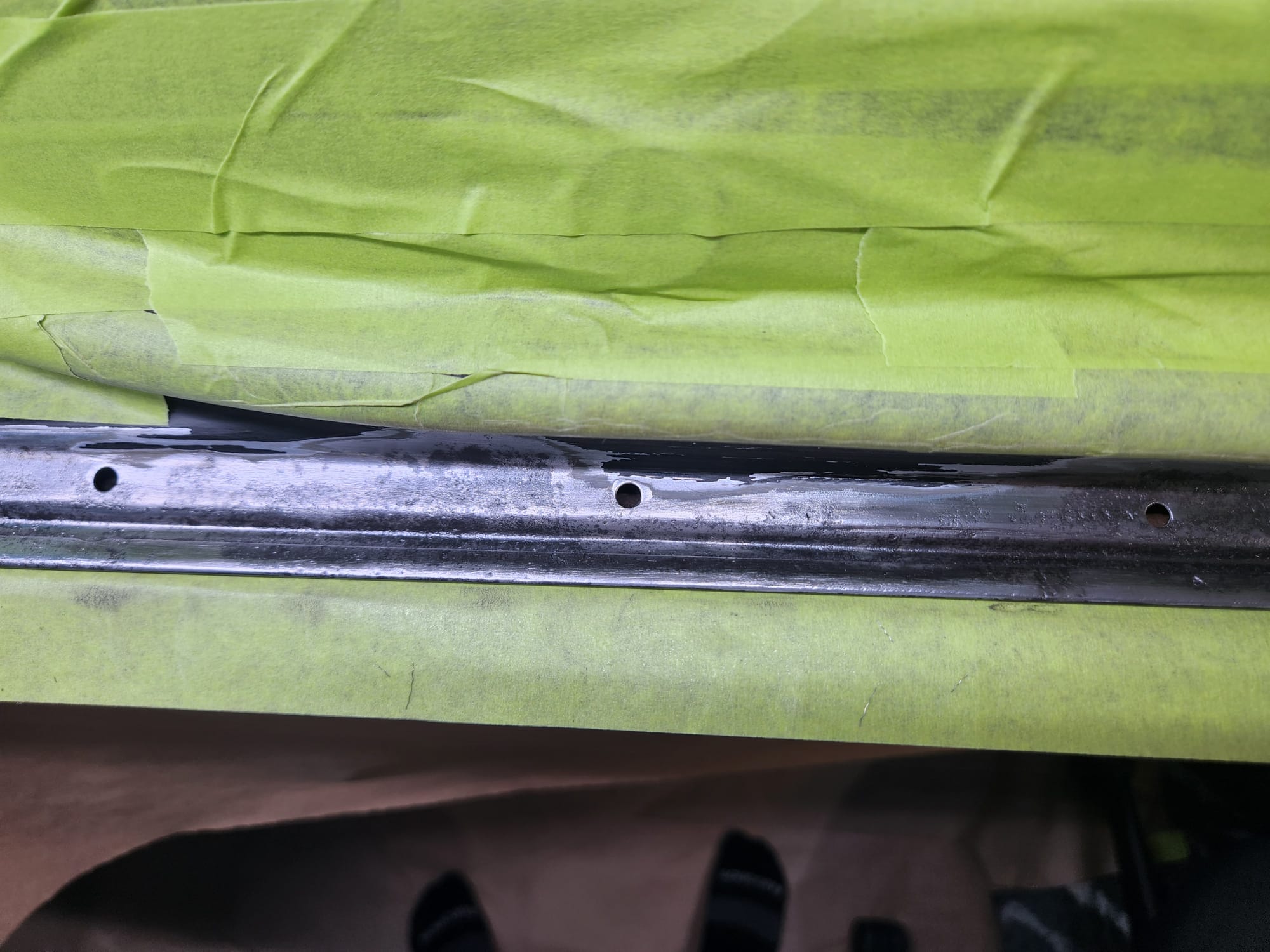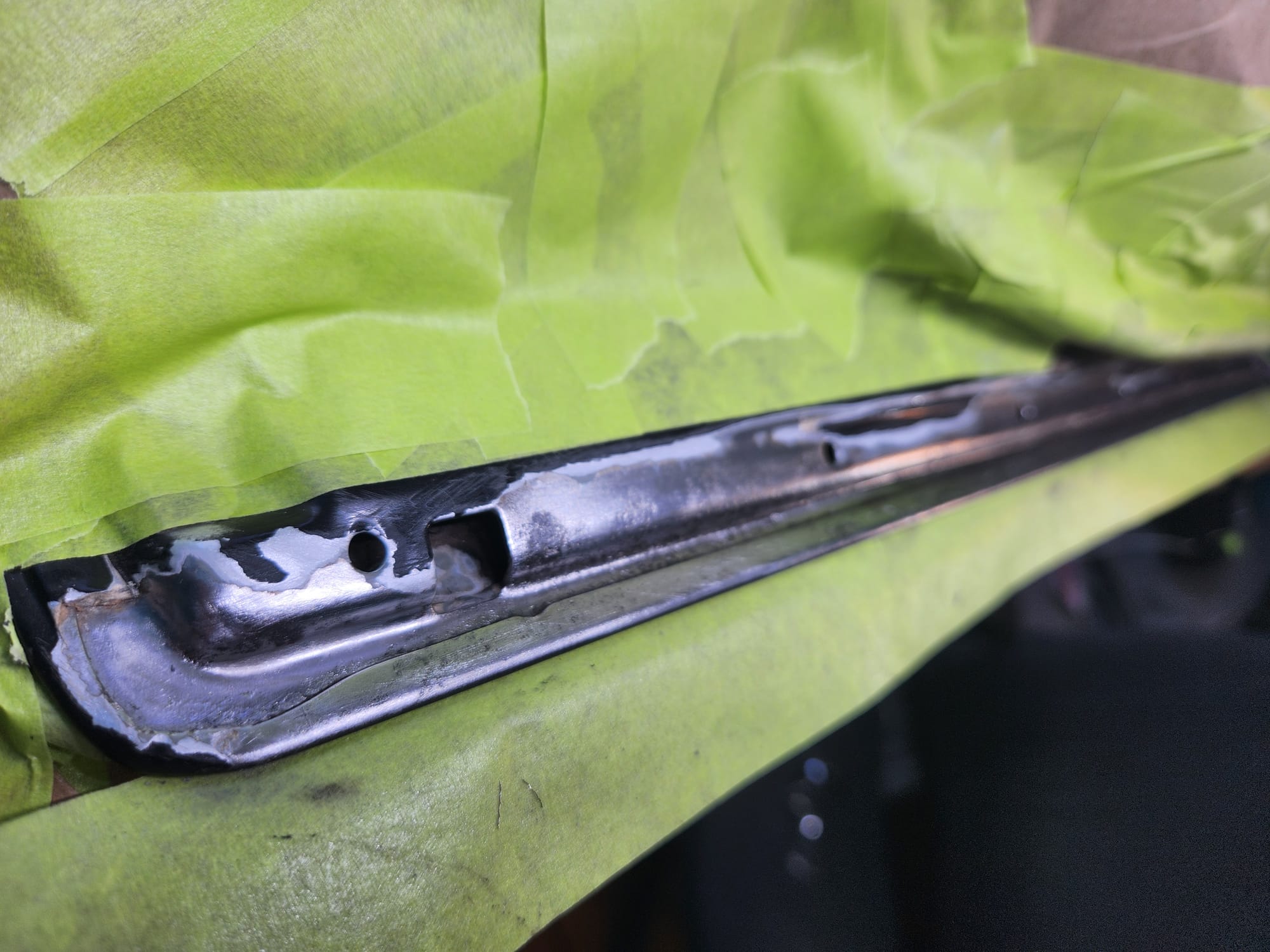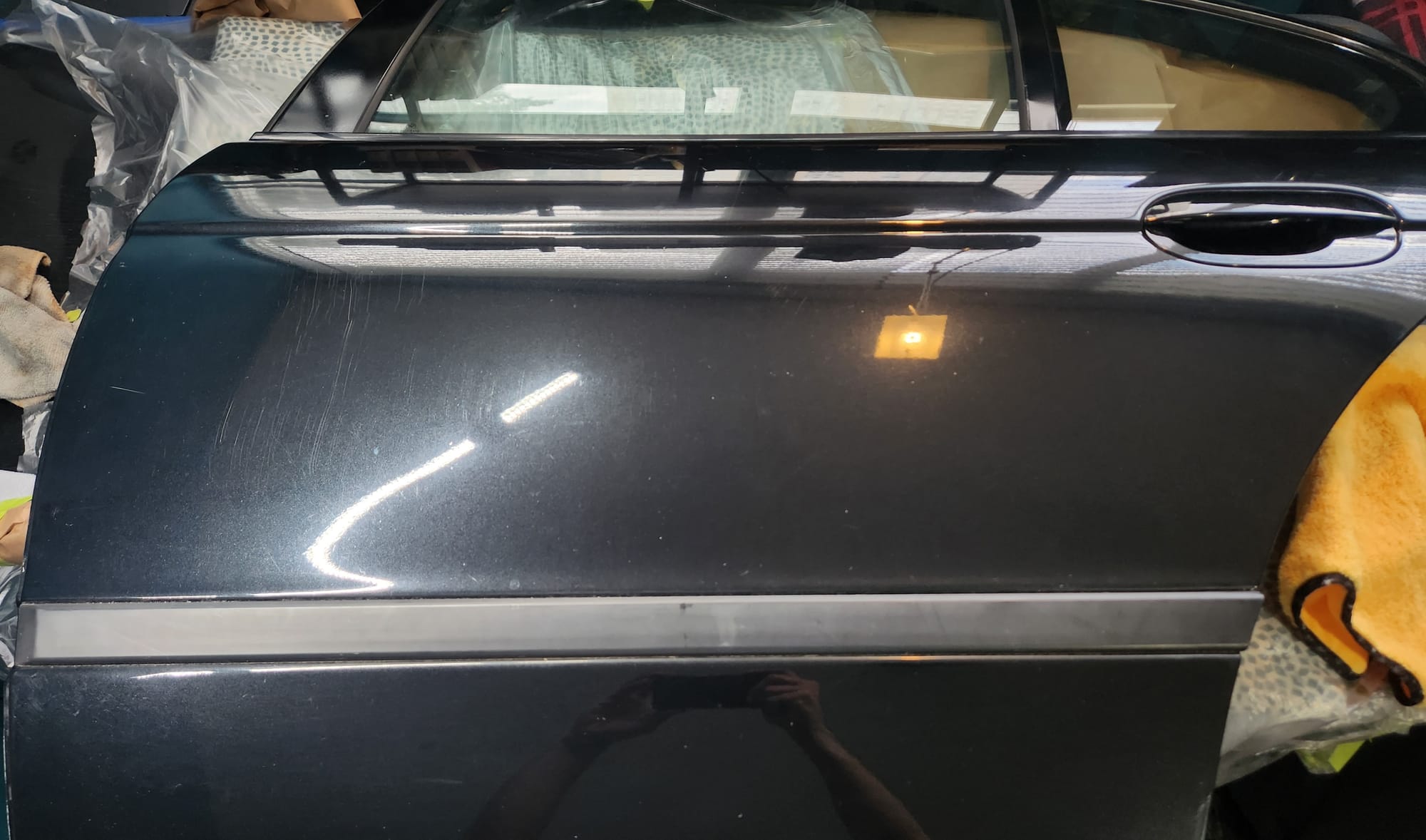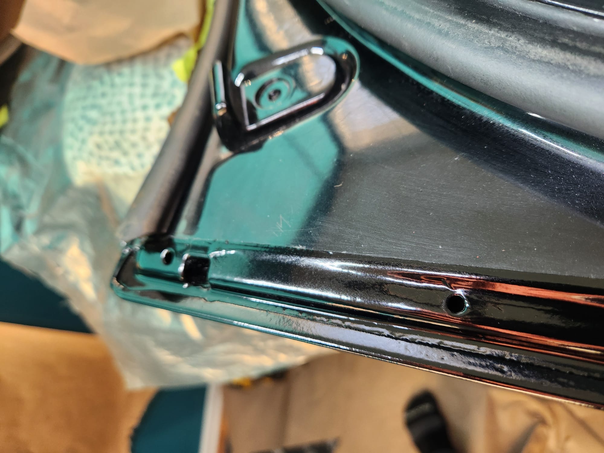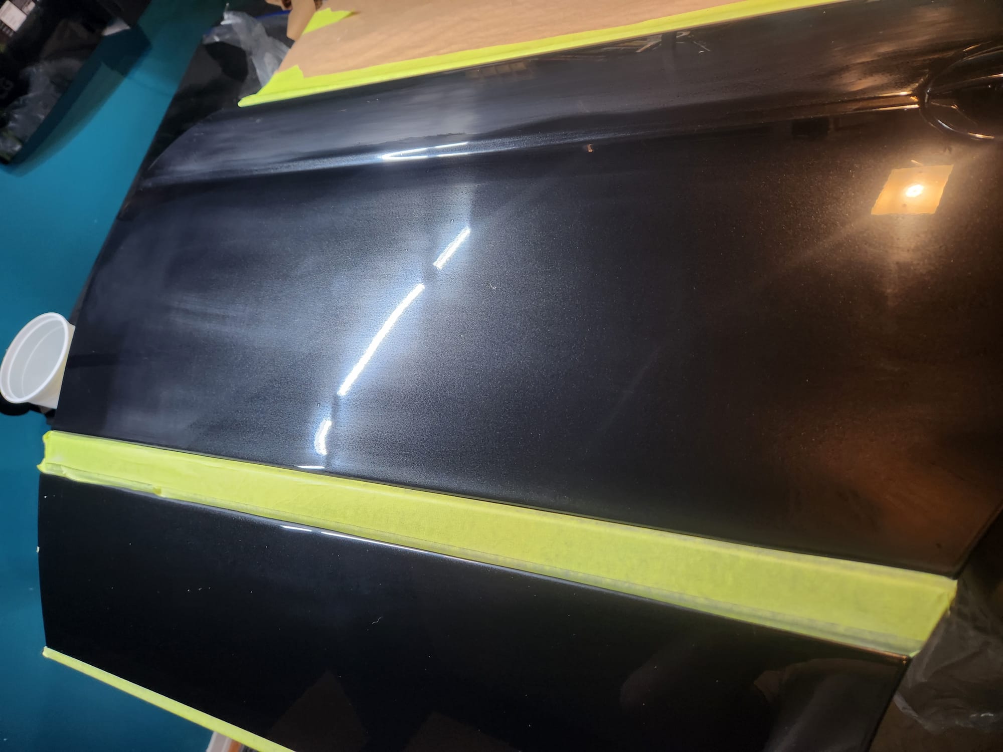 - Inspecting the Other Side: Flipped the door over for a closer inspection. While rust wasn't a major issue, there were scratches I aimed to remove. Noticed running clear coat, suggesting a previous repaint, which I planned to correct with wet sanding to address both the scratches and the uneven clear coat.