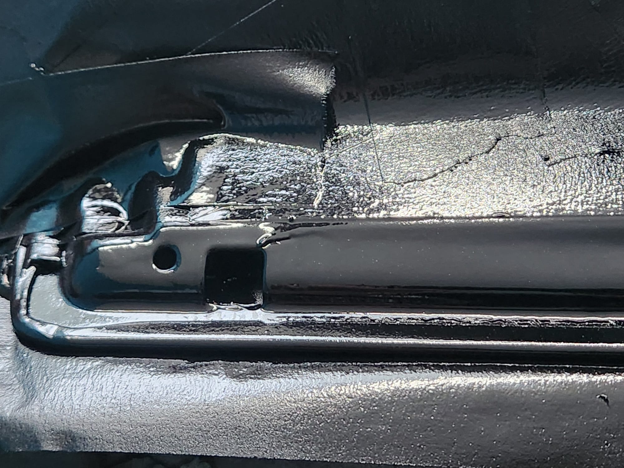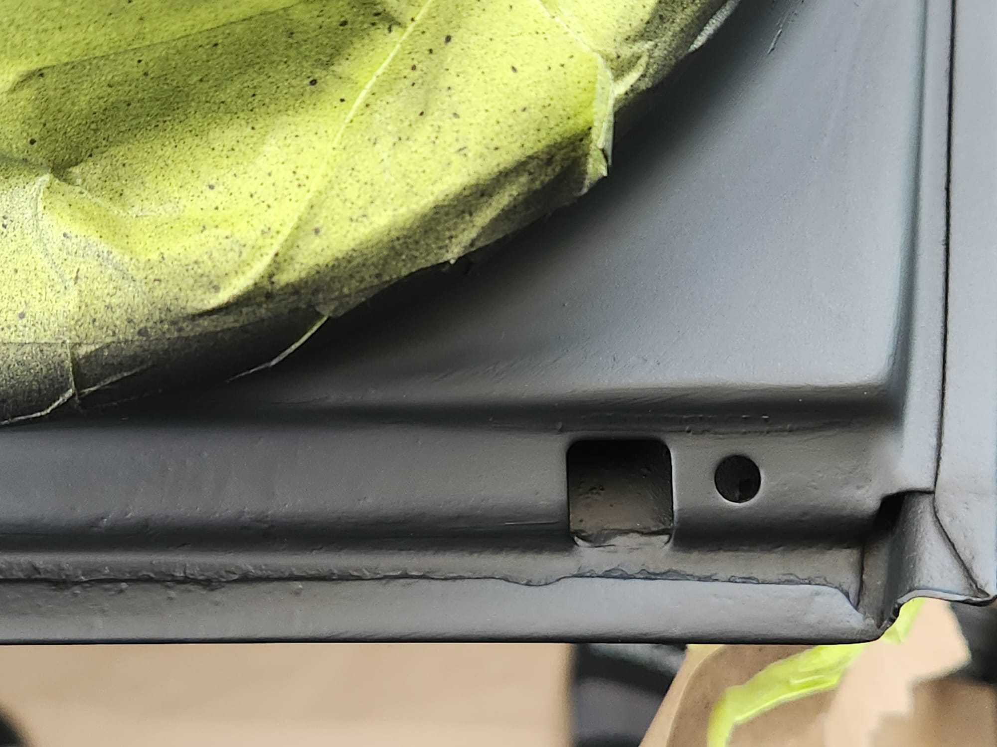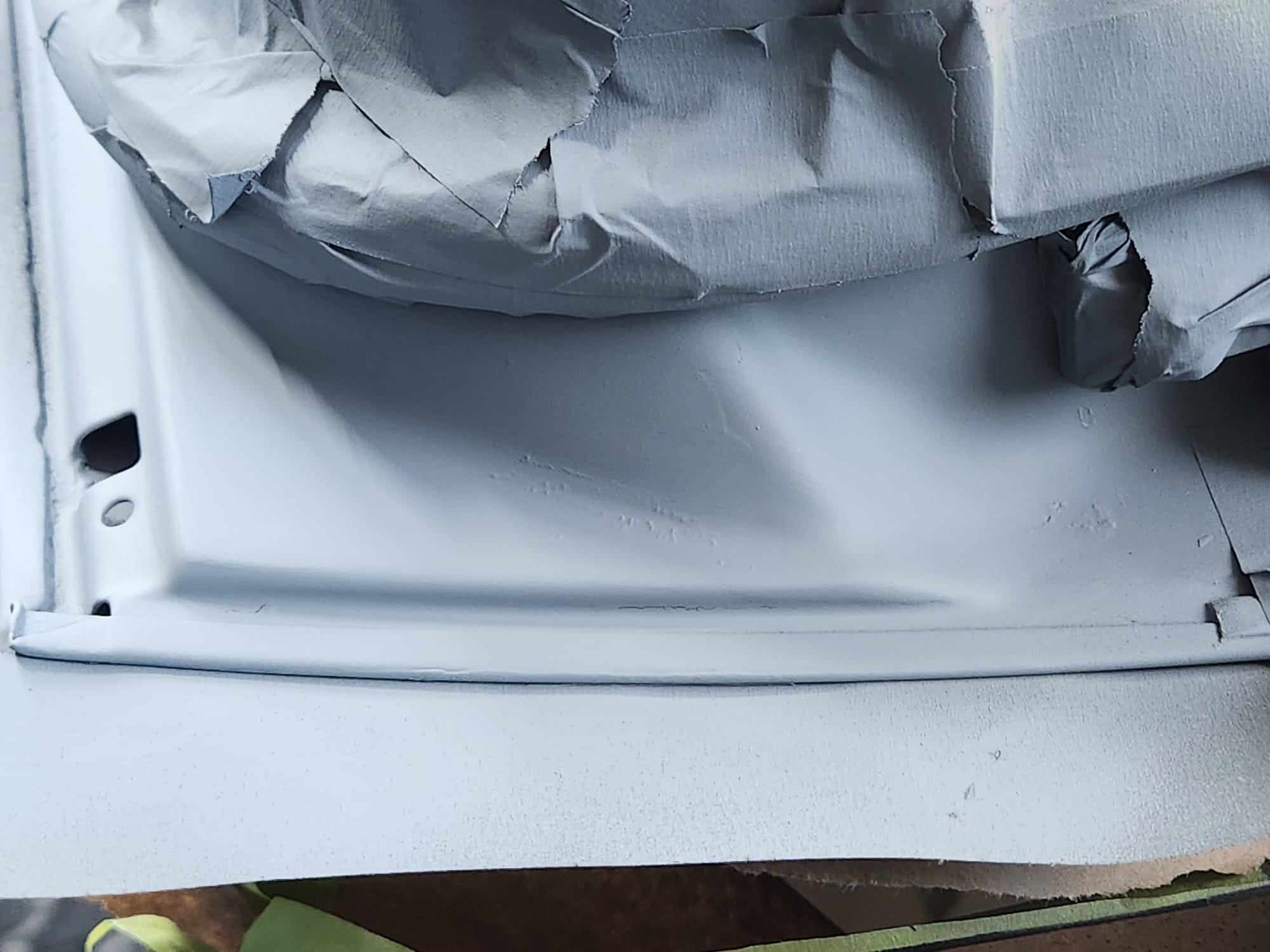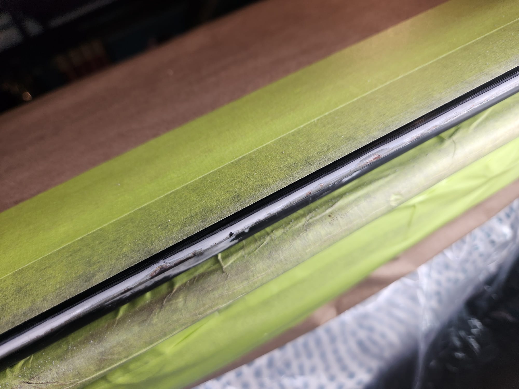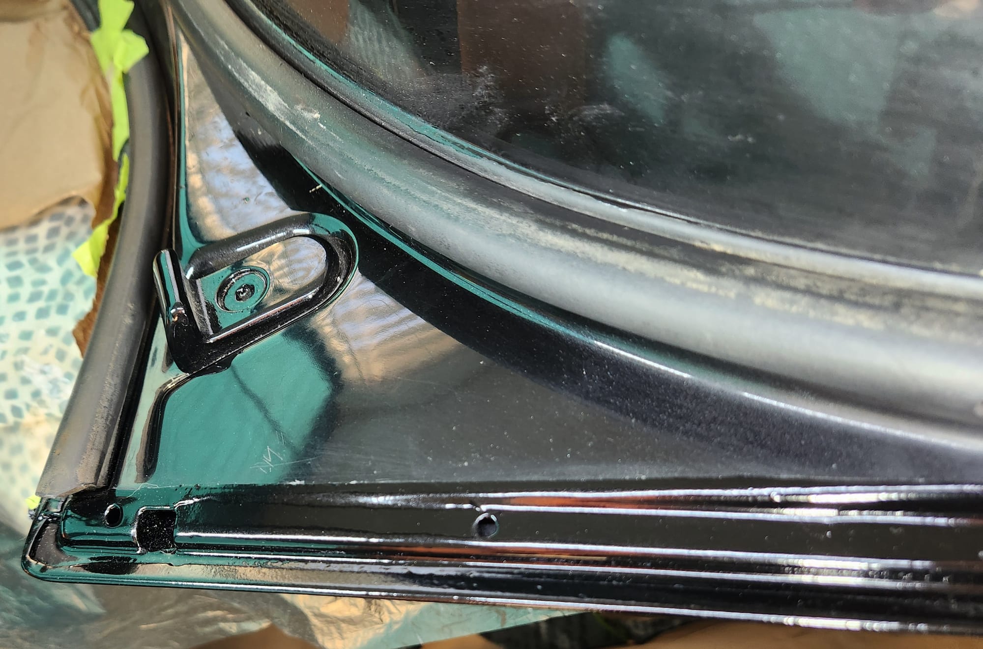 - Inspecting the Other Side: Flipped the door over for a closer inspection. While rust wasn't a major issue, there were scratches I aimed to remove. Noticed running clear coat, suggesting a previous repaint, which I planned to correct with wet sanding to address both the scratches and the uneven clear coat.