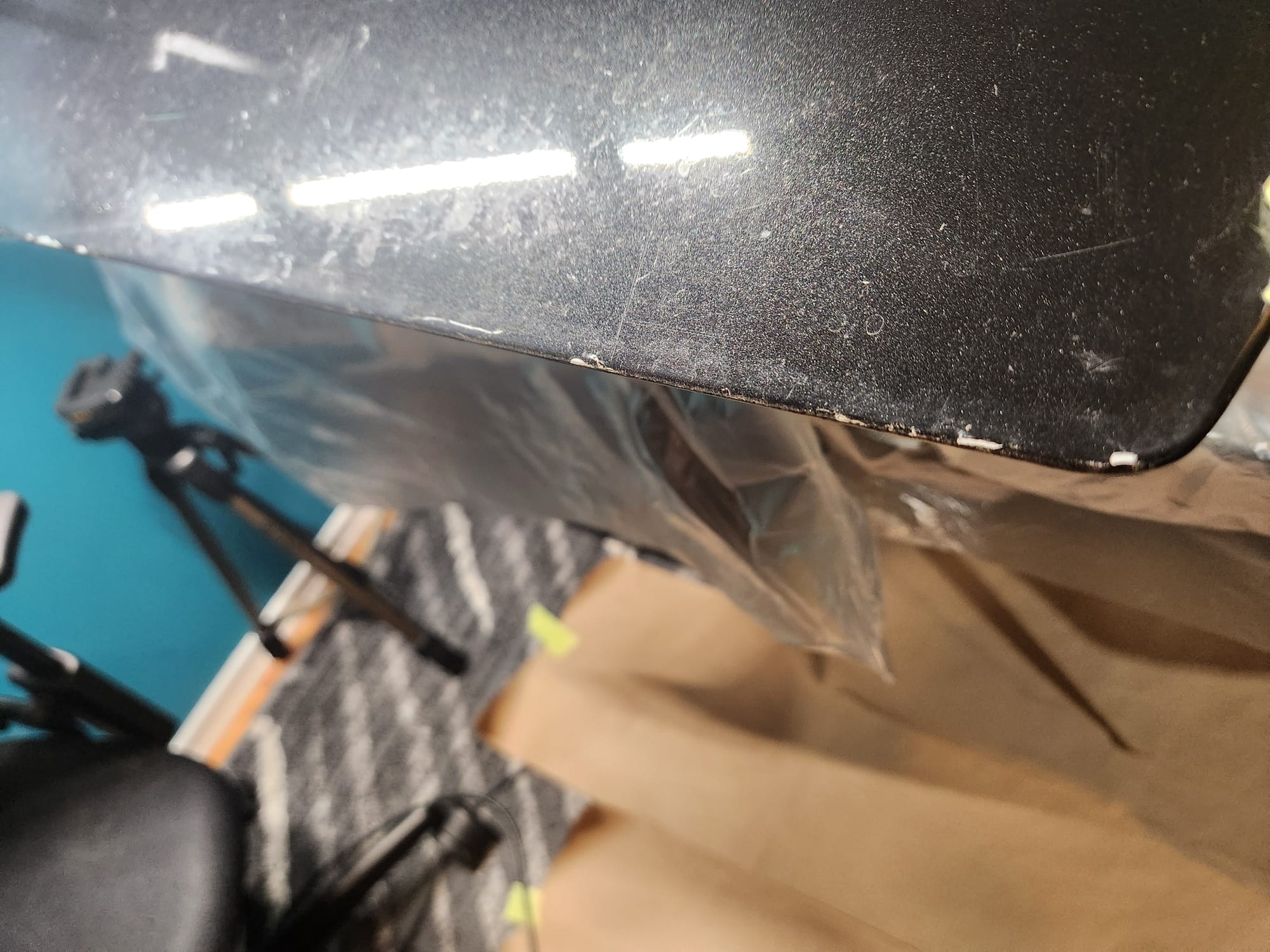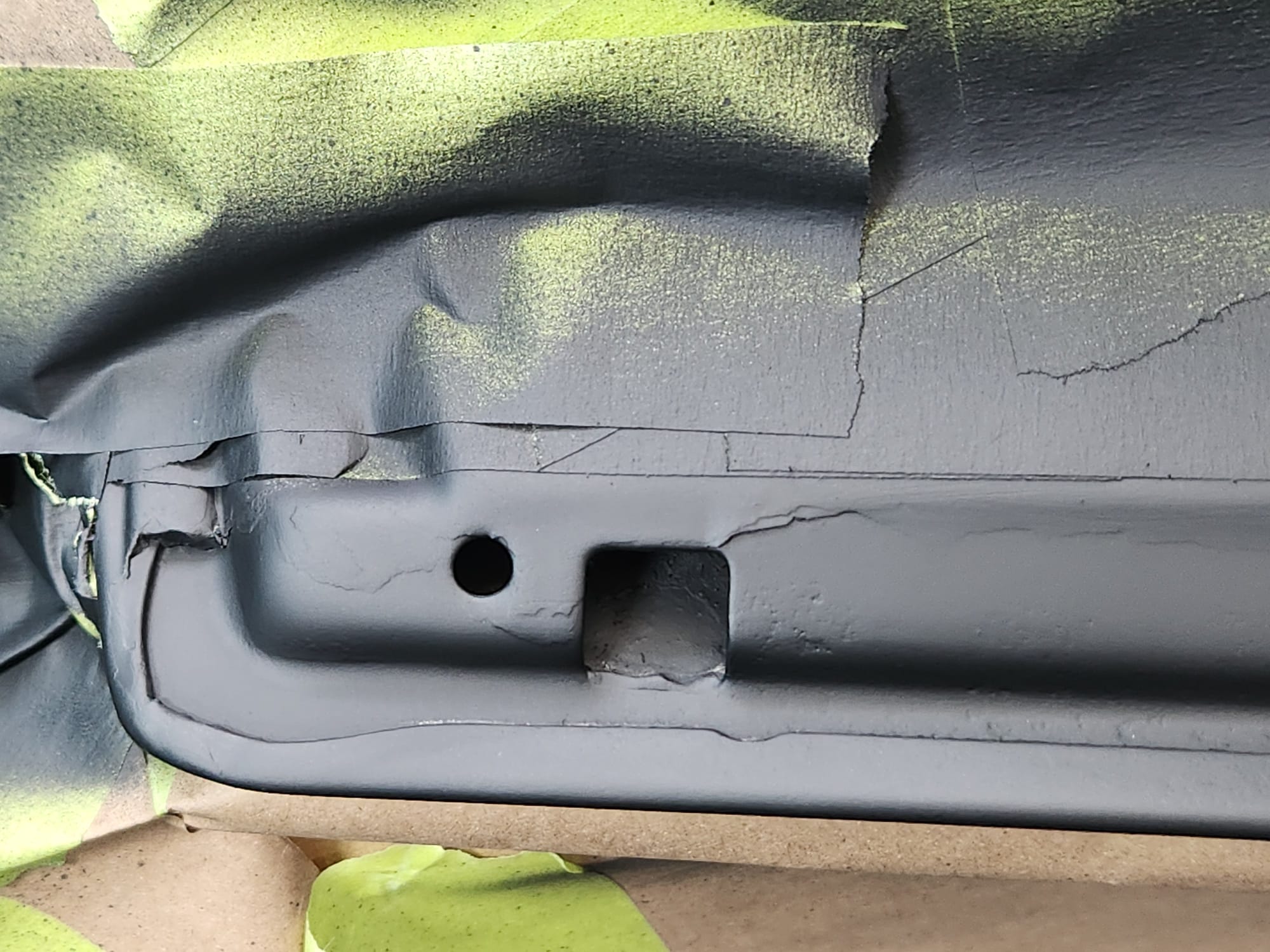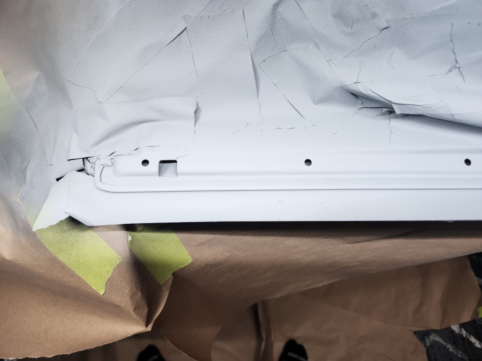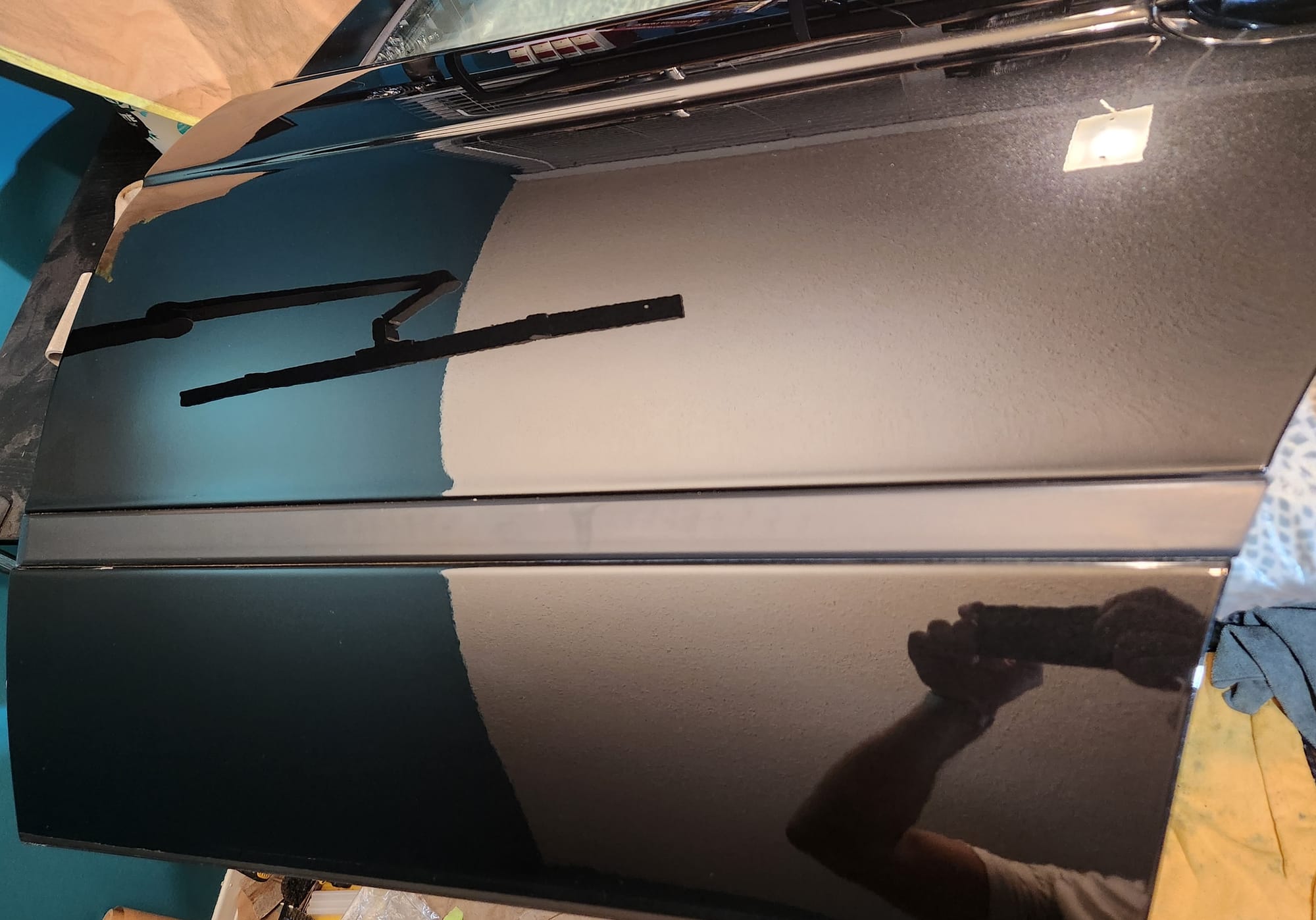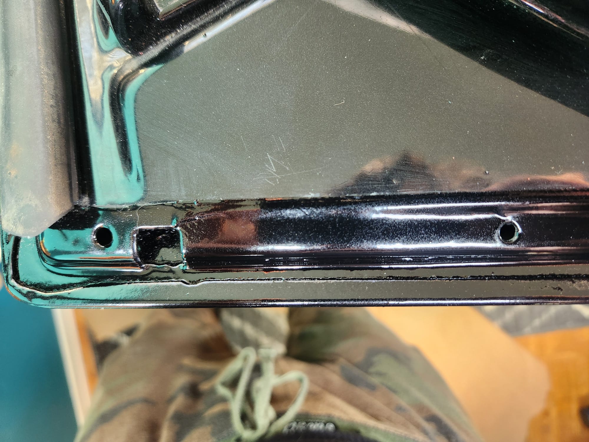 - Inspecting the Other Side: Flipped the door over for a closer inspection. While rust wasn't a major issue, there were scratches I aimed to remove. Noticed running clear coat, suggesting a previous repaint, which I planned to correct with wet sanding to address both the scratches and the uneven clear coat.