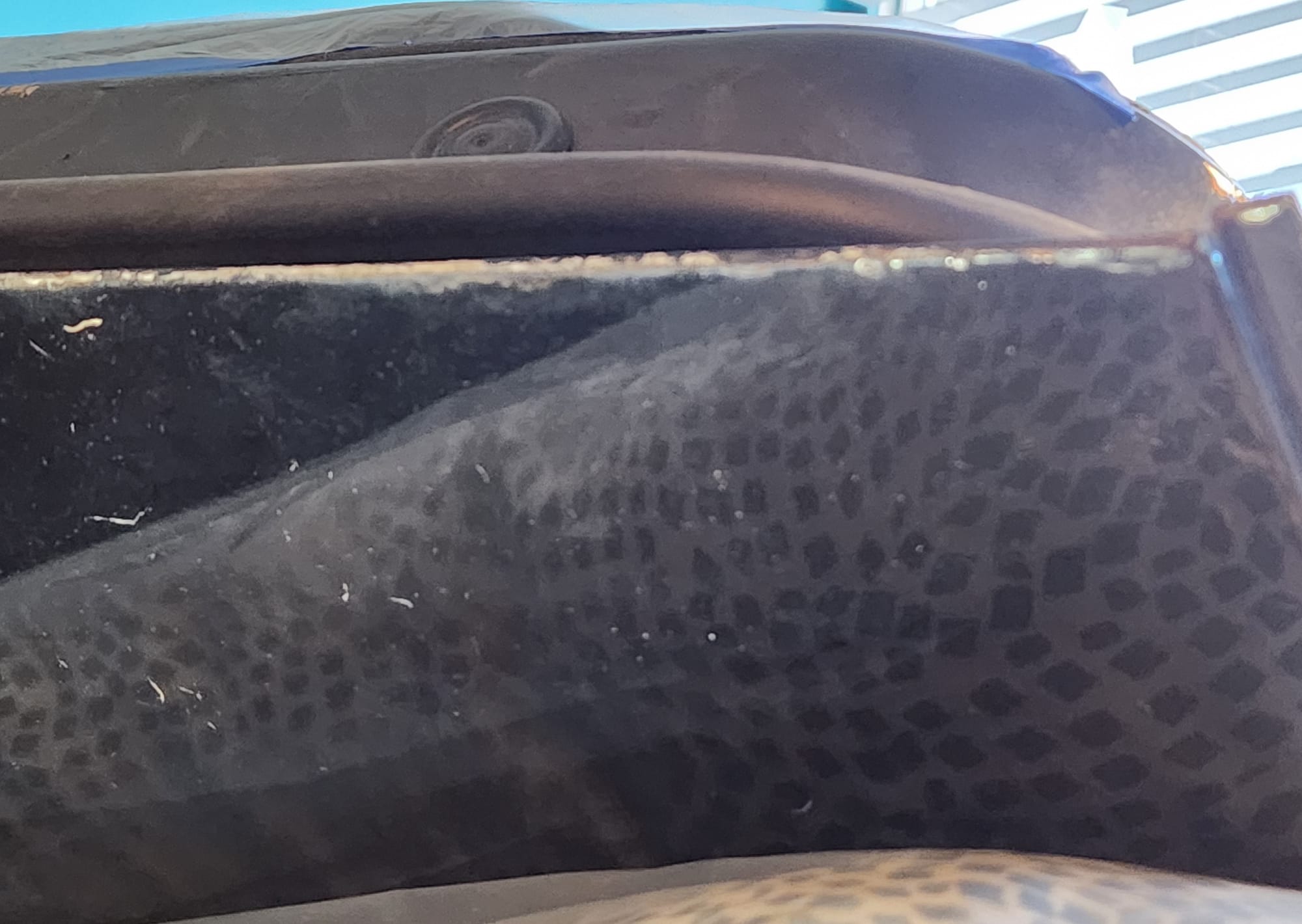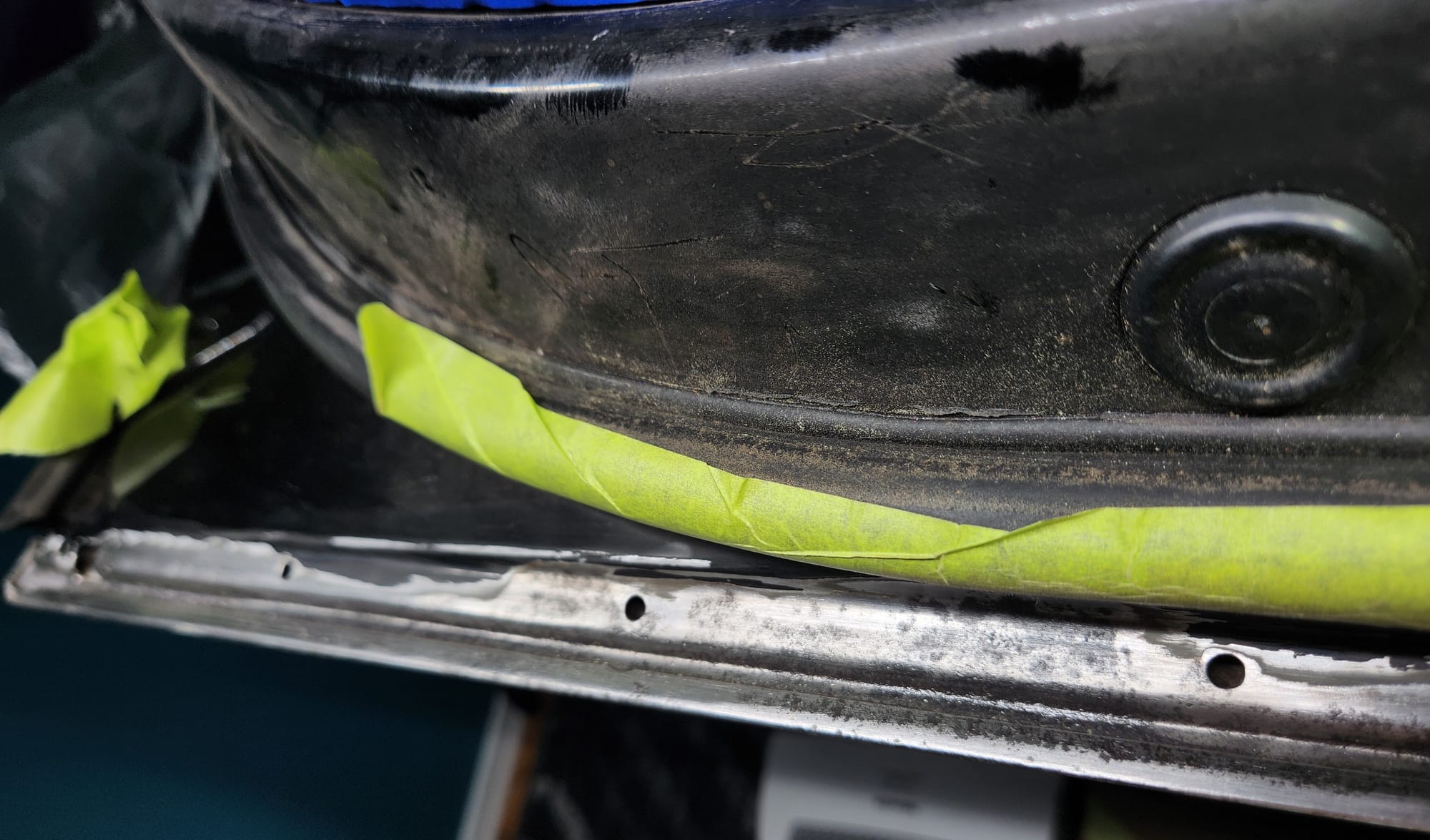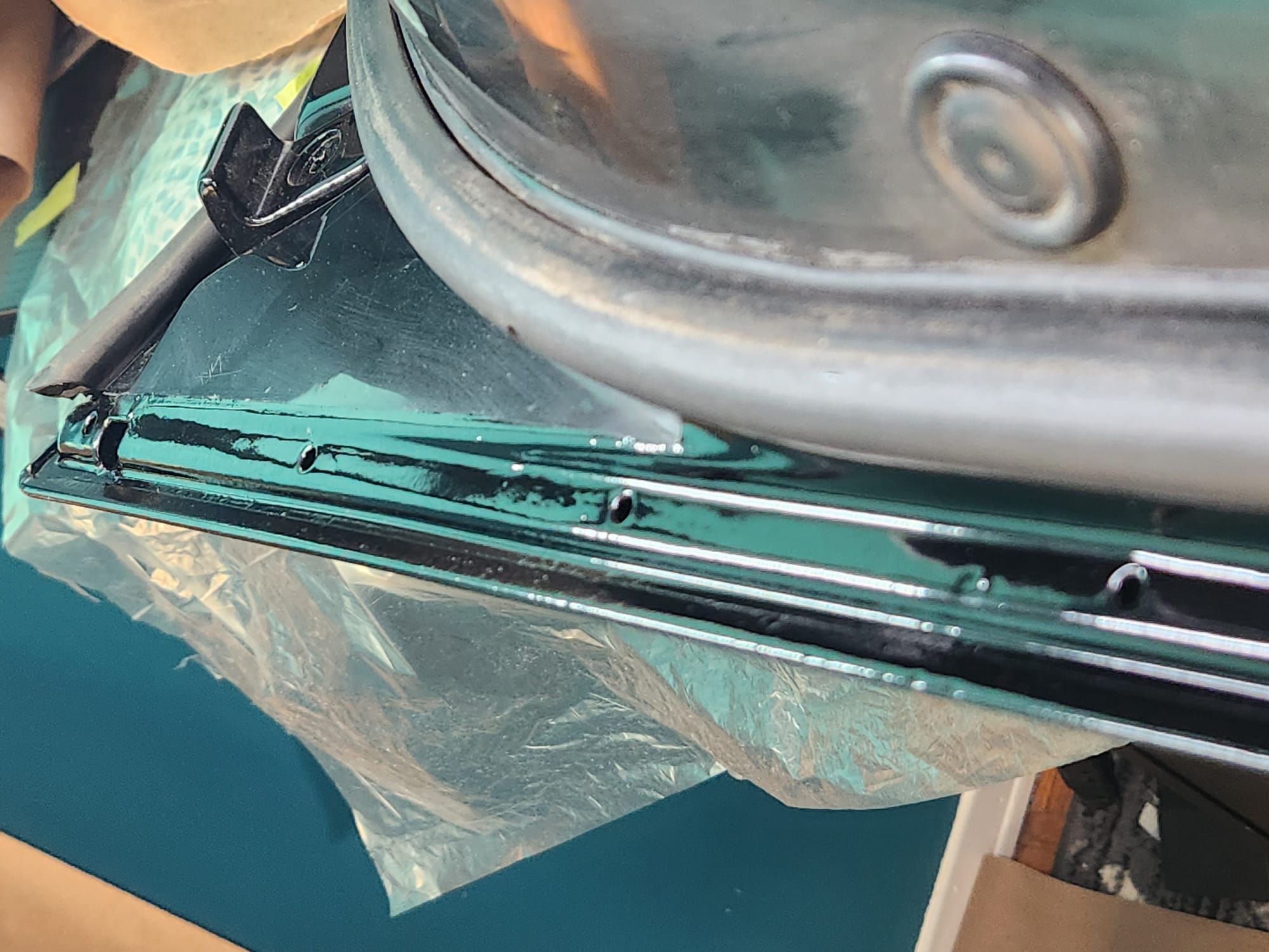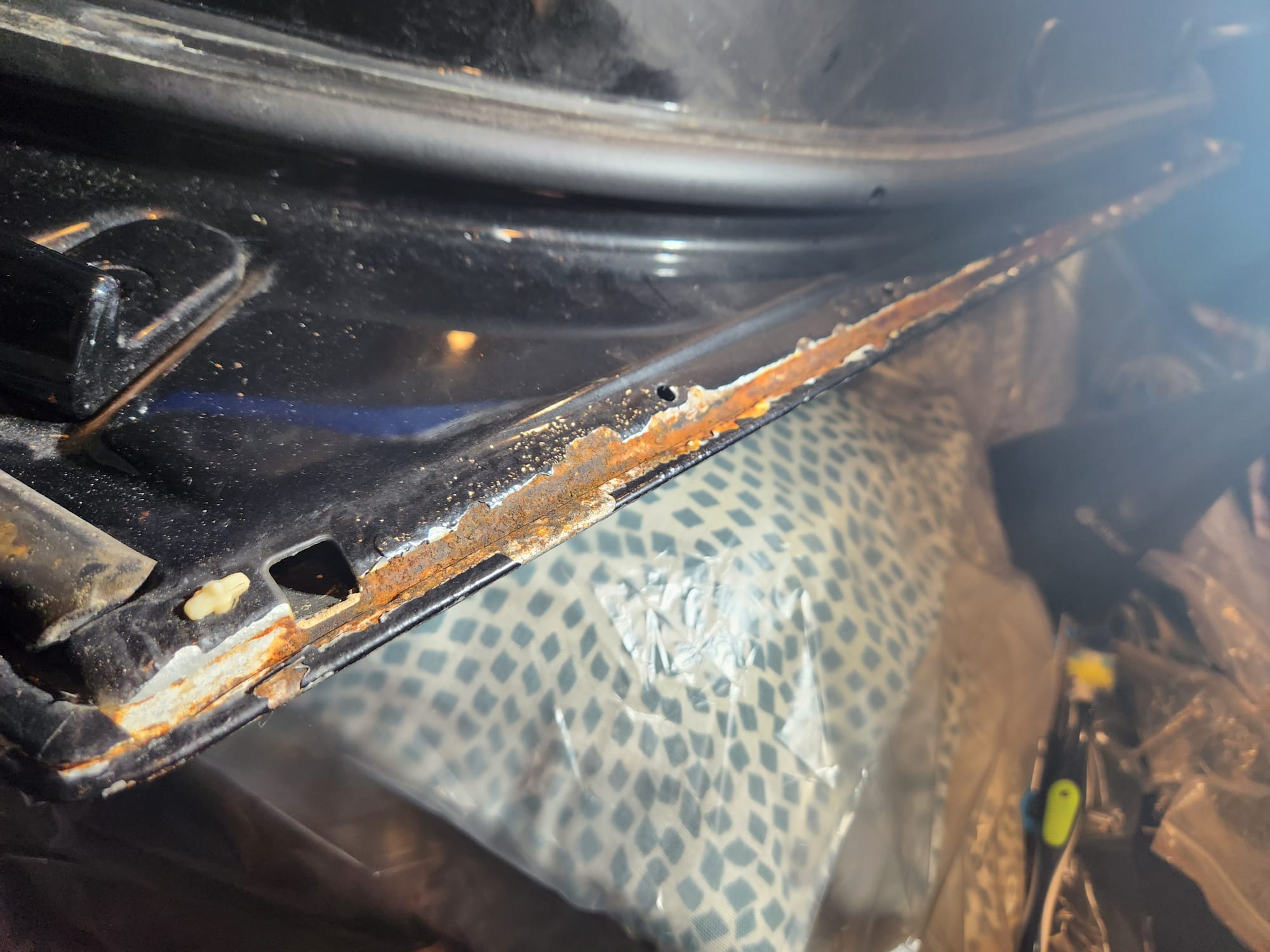 - Inspect for Damage: Examined the interior and exterior lower edge, identifying paint bubbling. Used a sharp small flat-head screwdriver and metal wire brush to aggressively scrape off the affected areas.