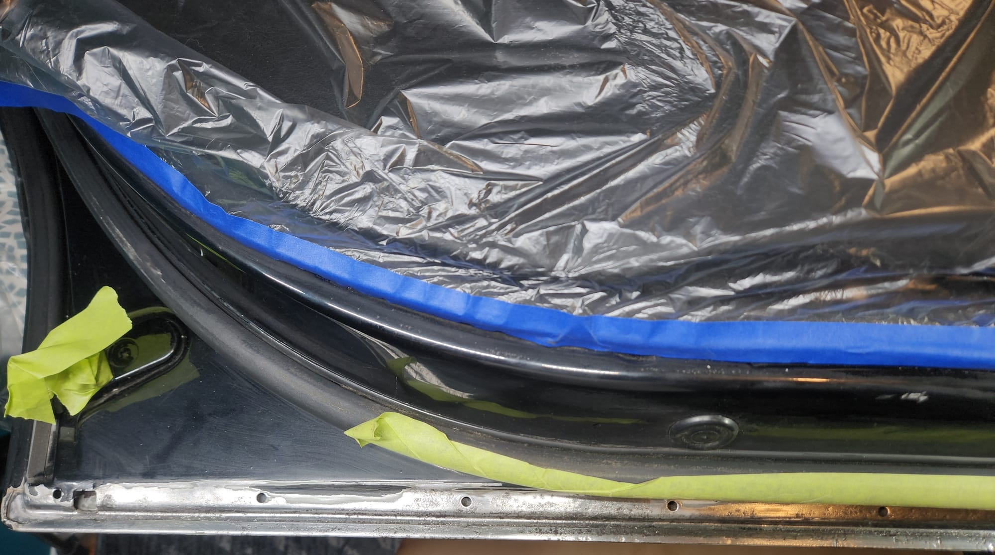 - Protect Surrounding Areas: Masked off the inner part of the door to prevent unwanted paint or damage.