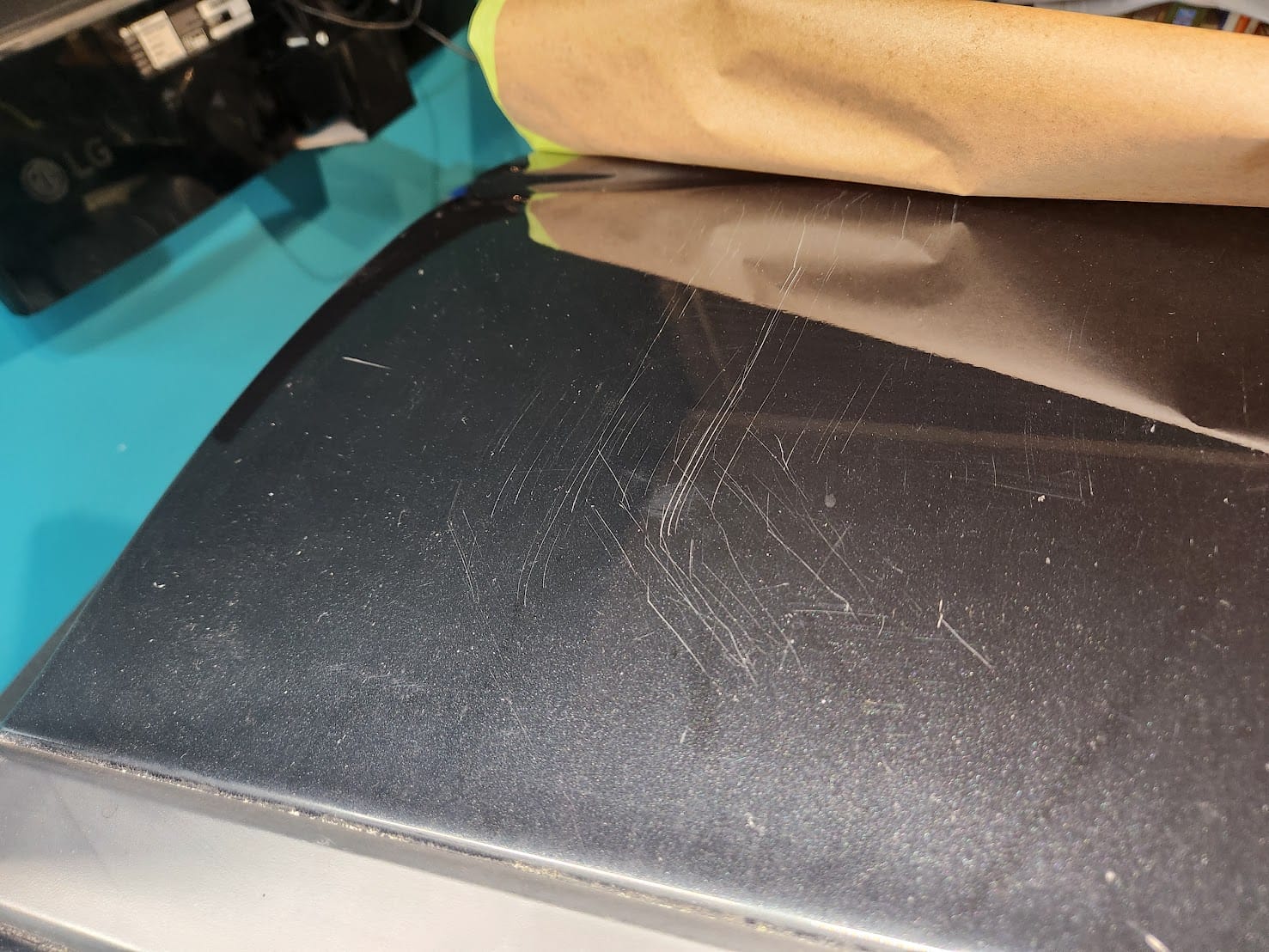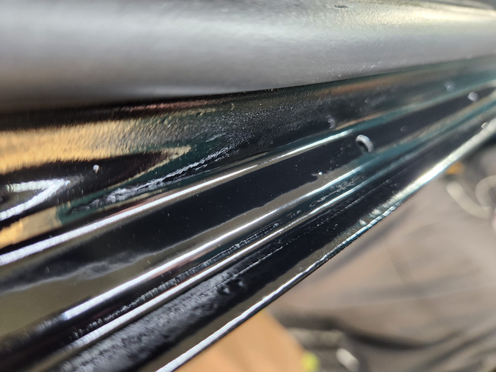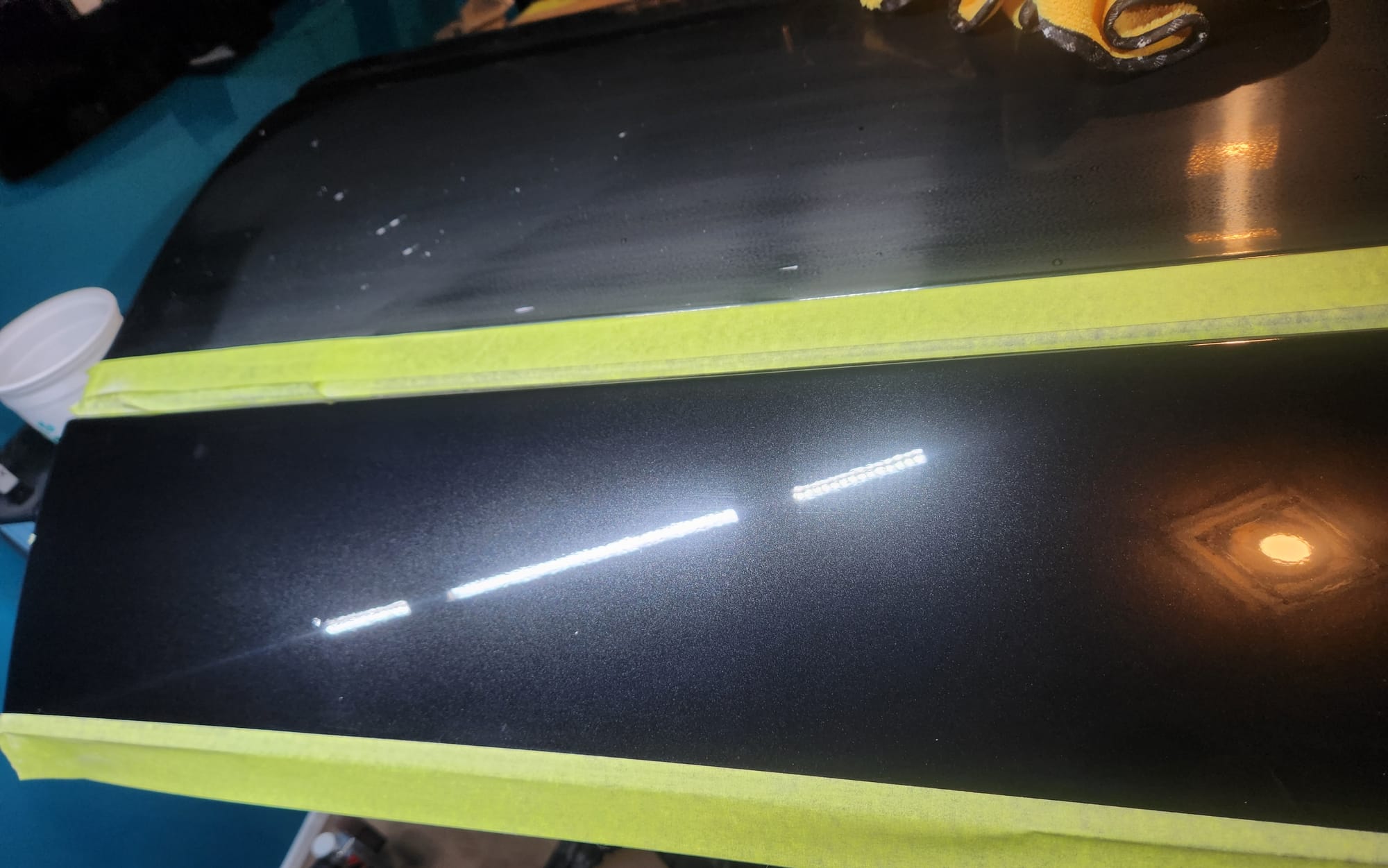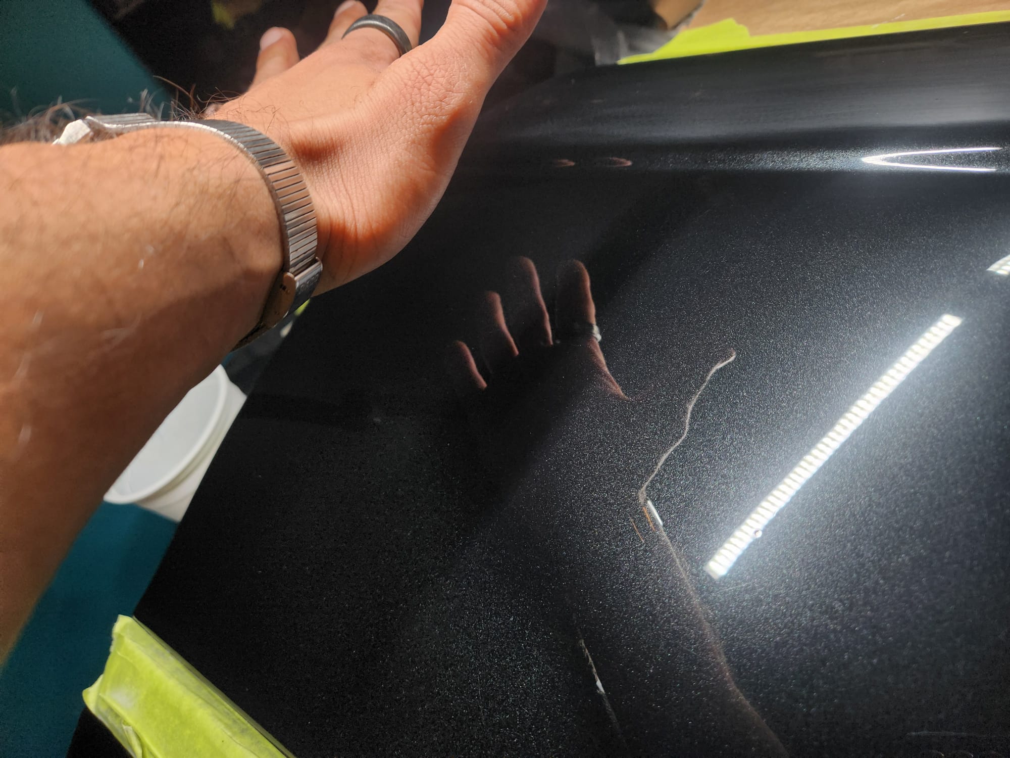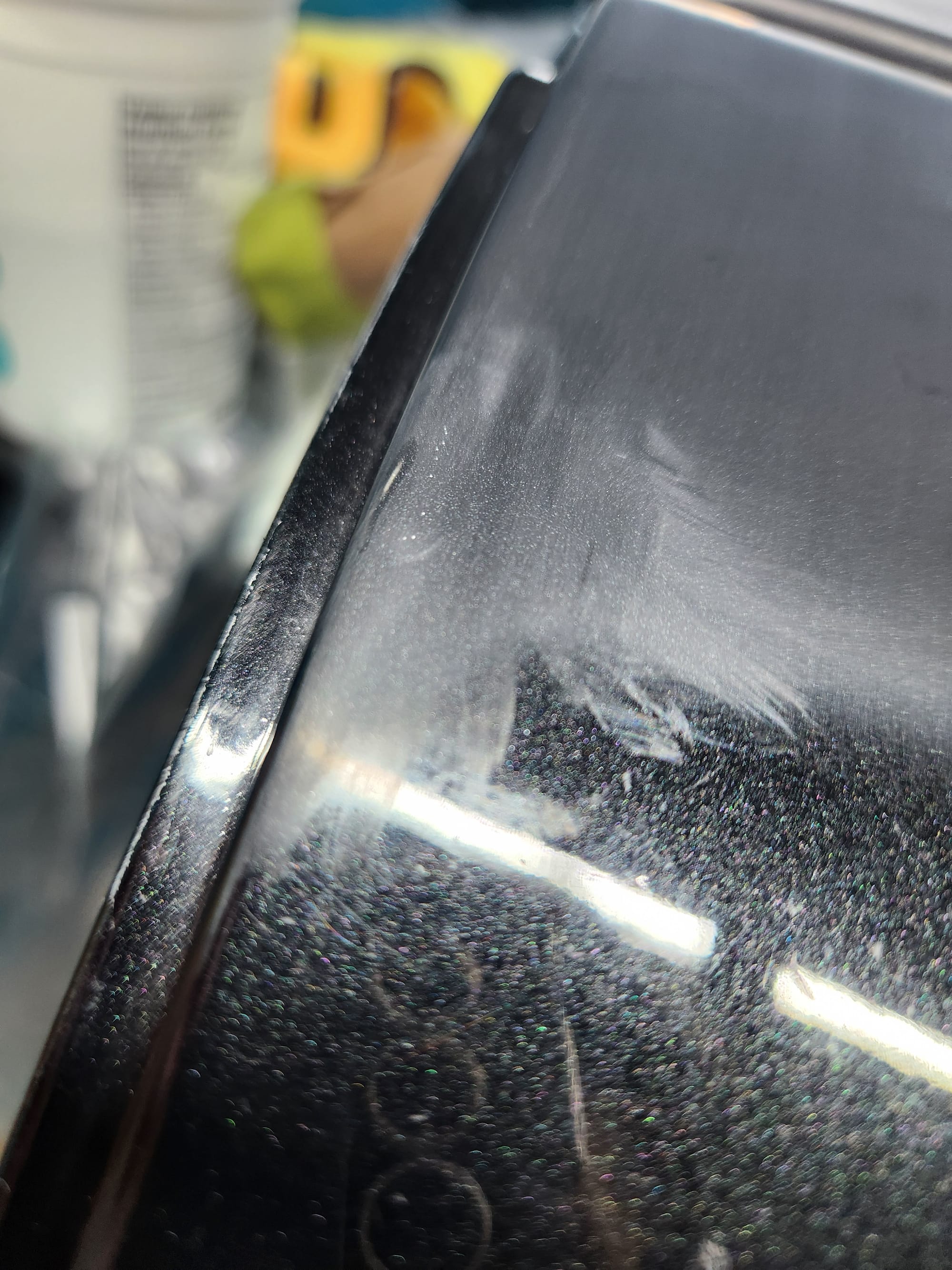 - Progress was going pretty well. I noticed another small scratch near by and applied the 3000 grit haze to it.