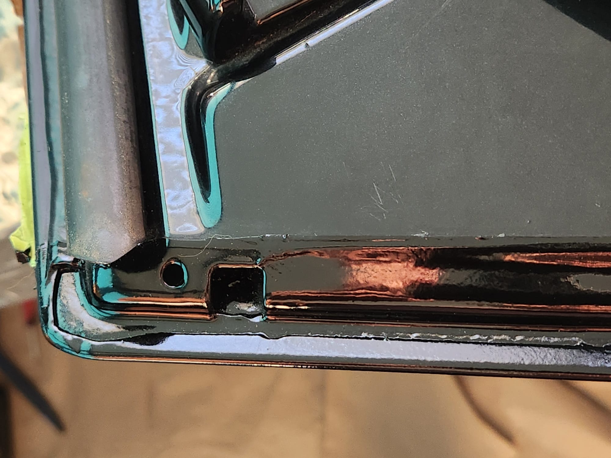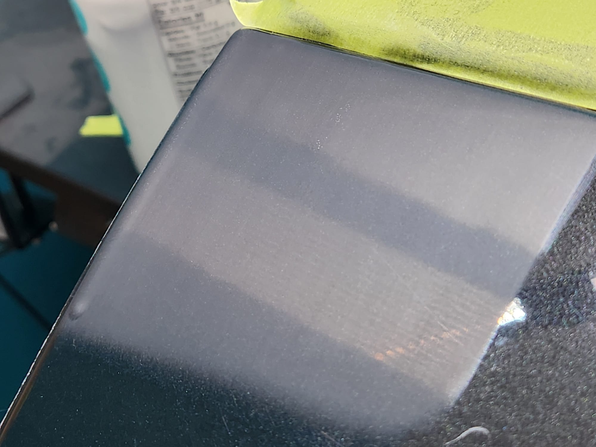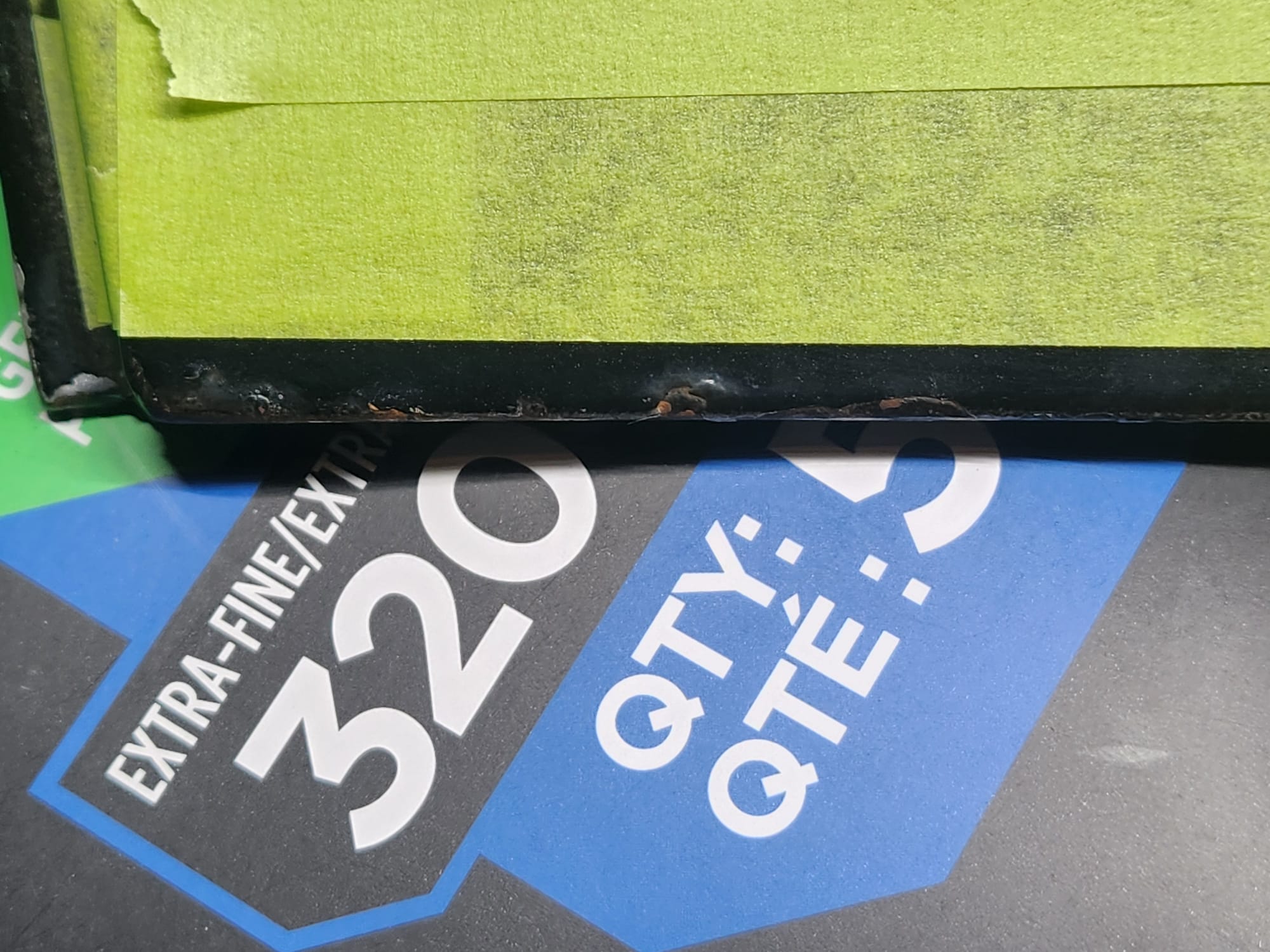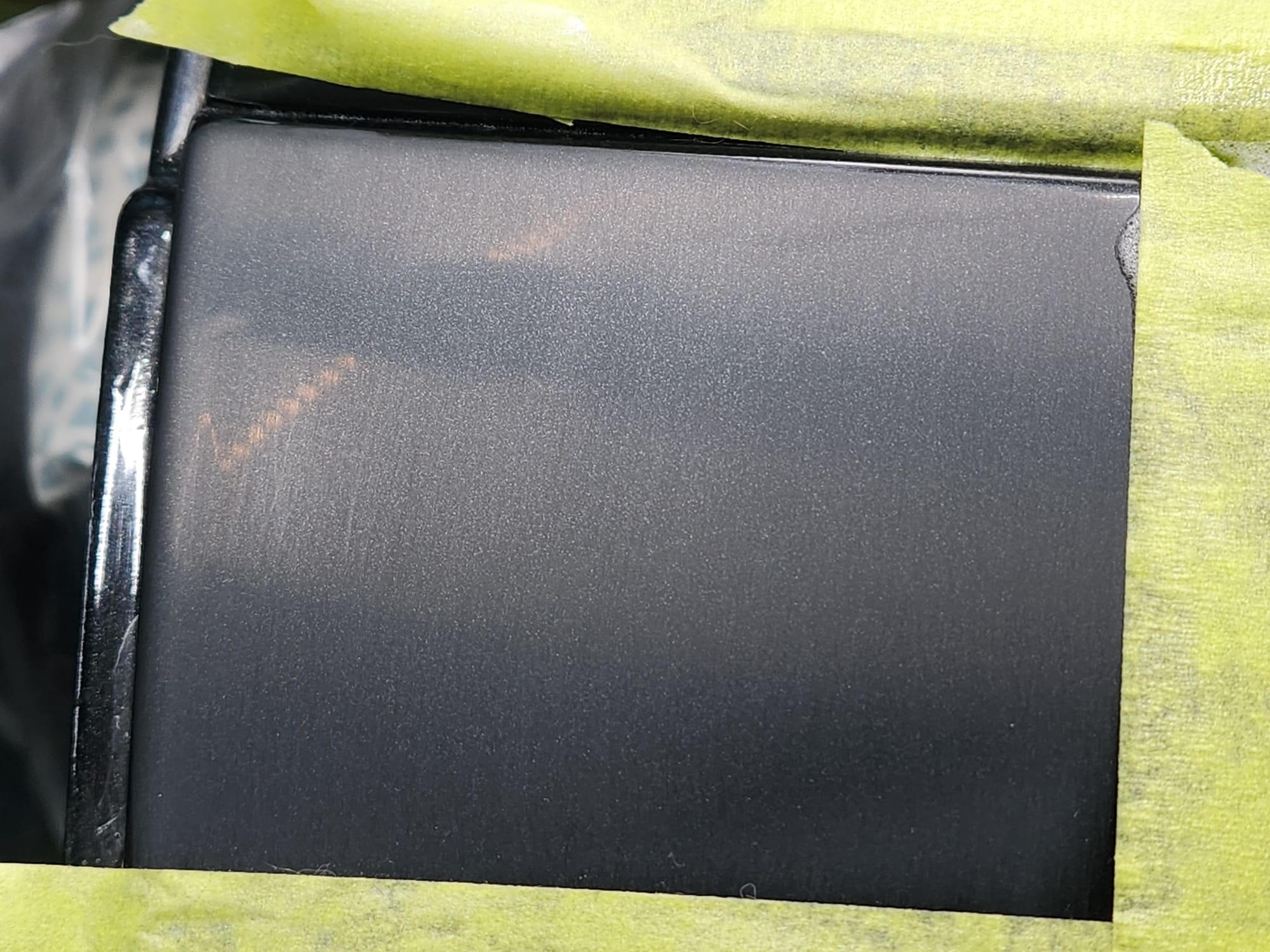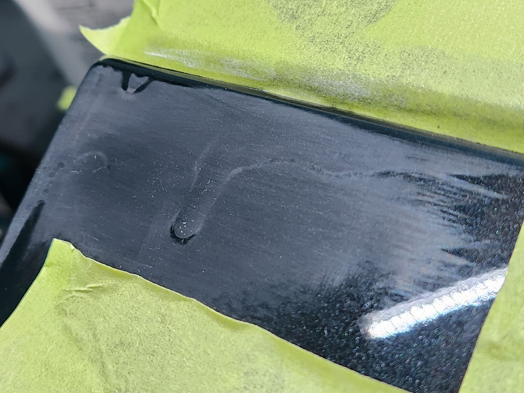 - A bit of the clear coat run near the left that I couldn't get out is visible below. The sanding wore down the edge much faster than the front facing area. Definitely would recommend extra care when sanding around an edge.