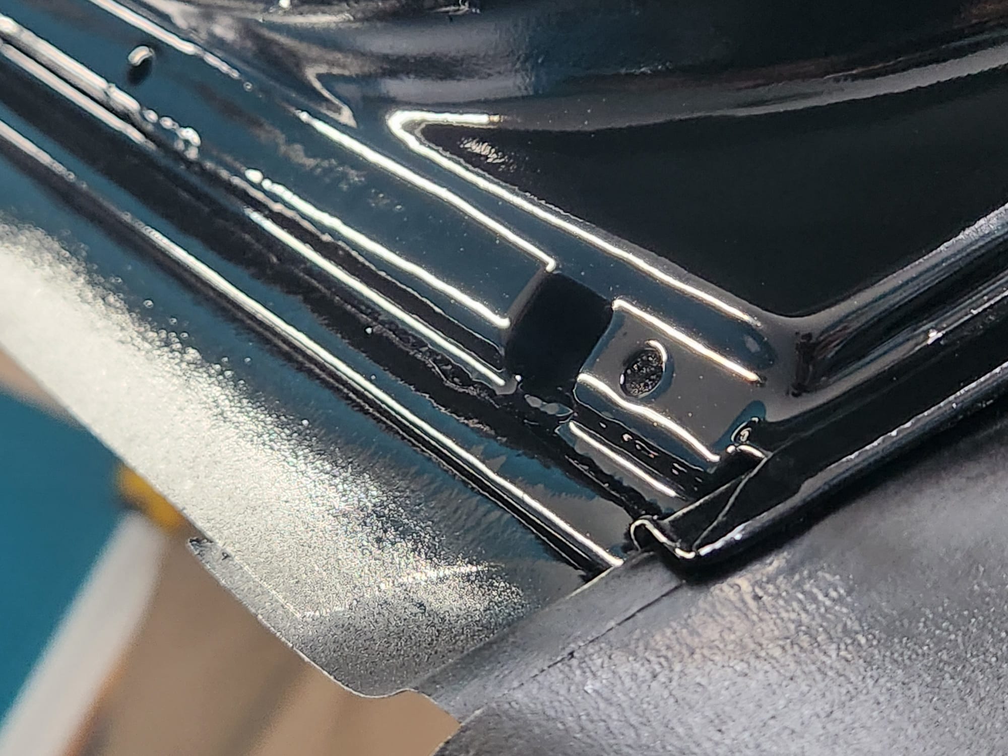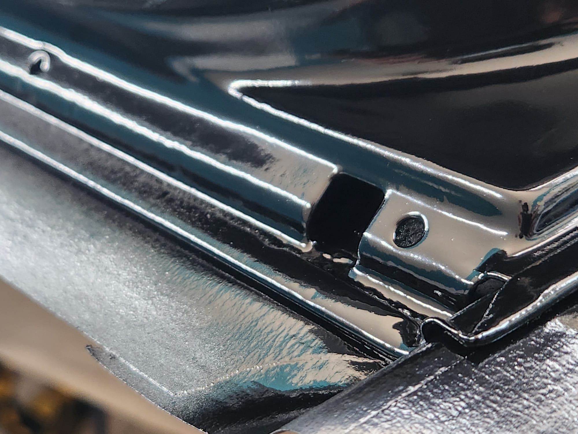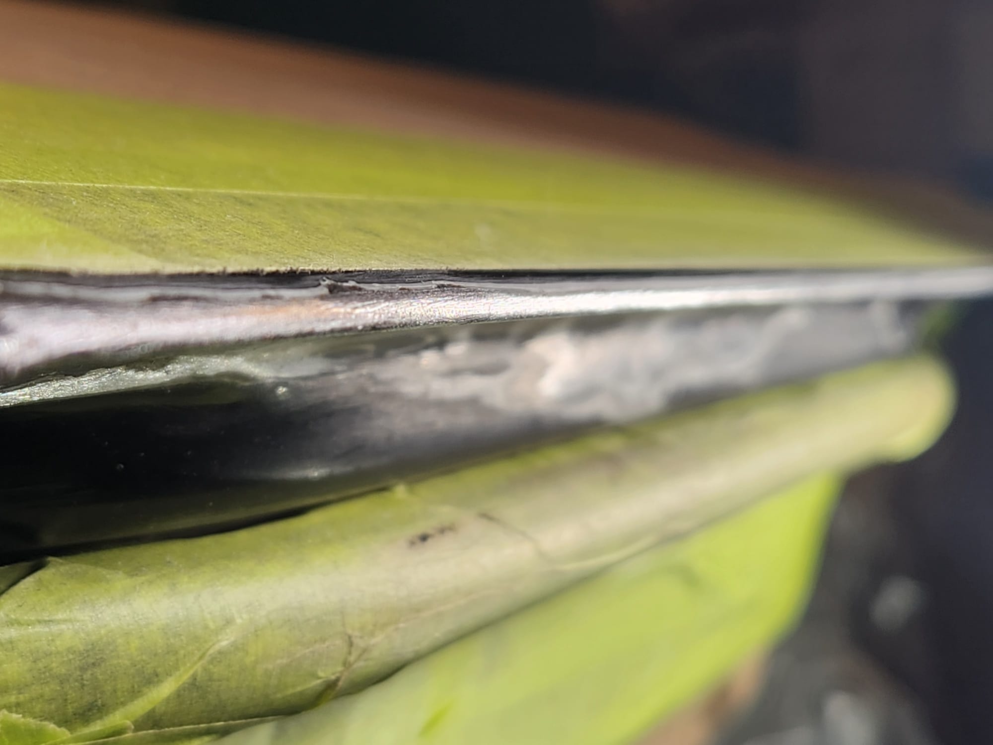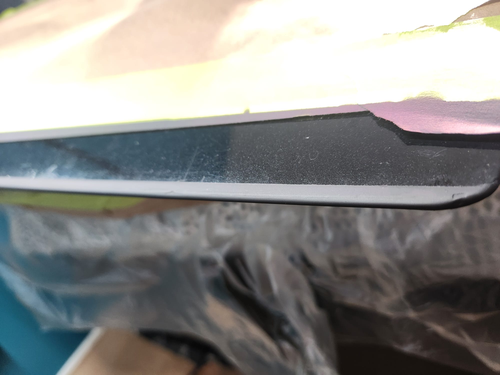 - A bit of the clear coat run near the left that I couldn't get out is visible below. The sanding wore down the edge much faster than the front facing area. Definitely would recommend extra care when sanding around an edge.
