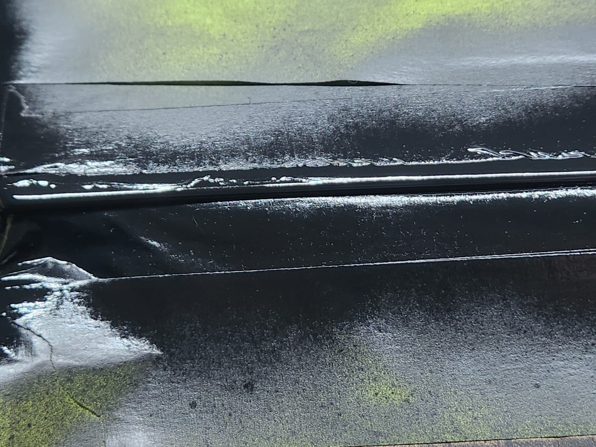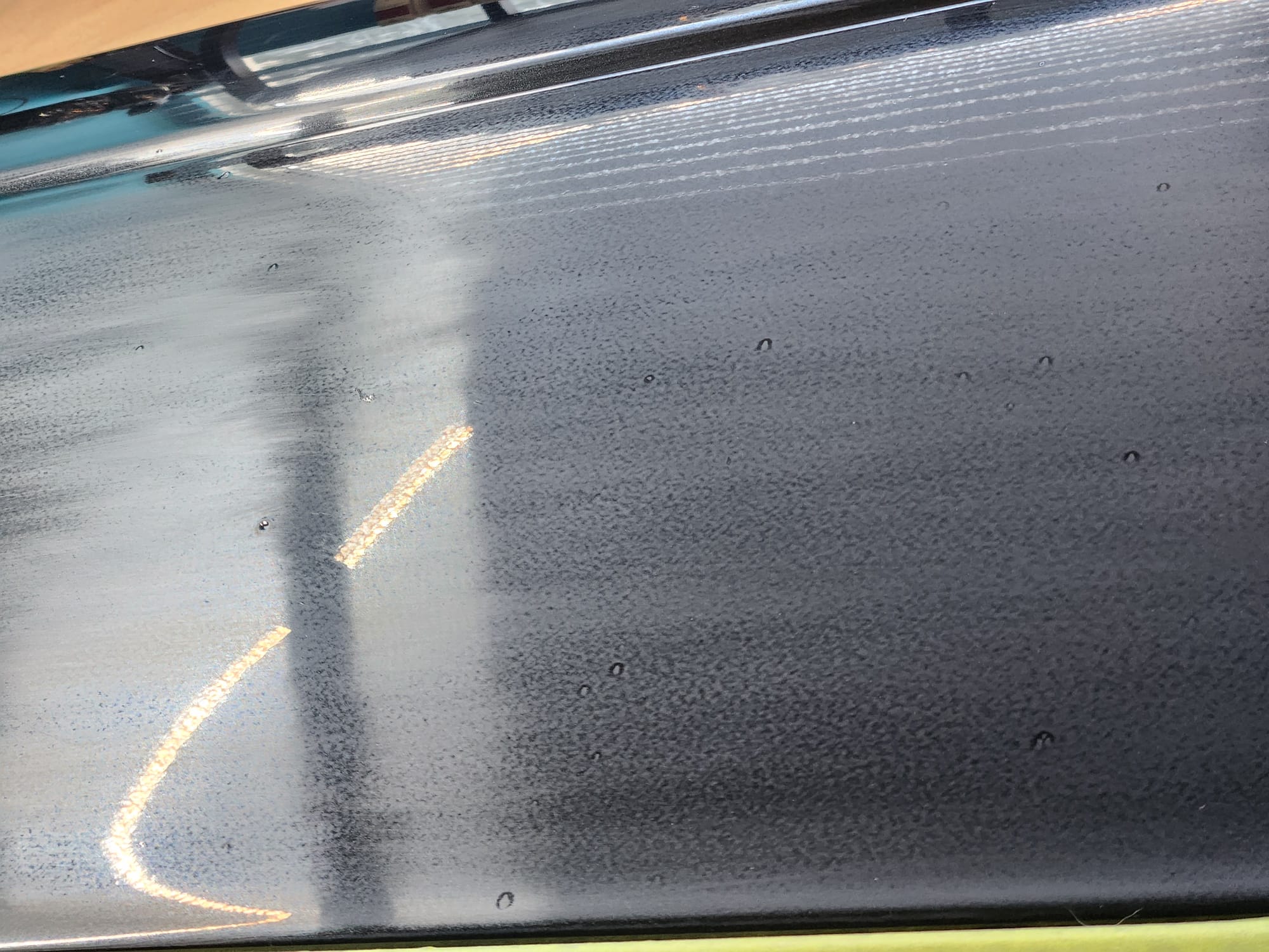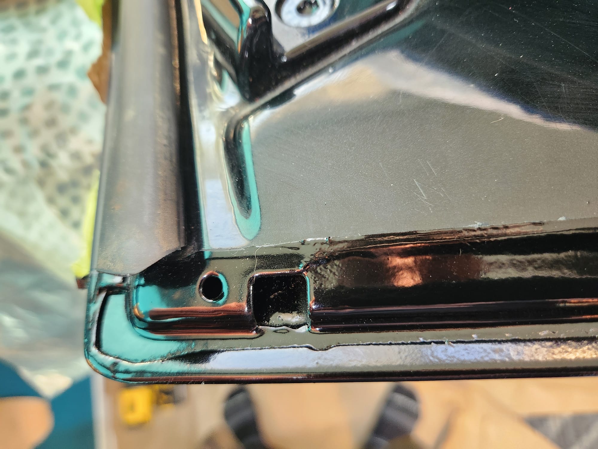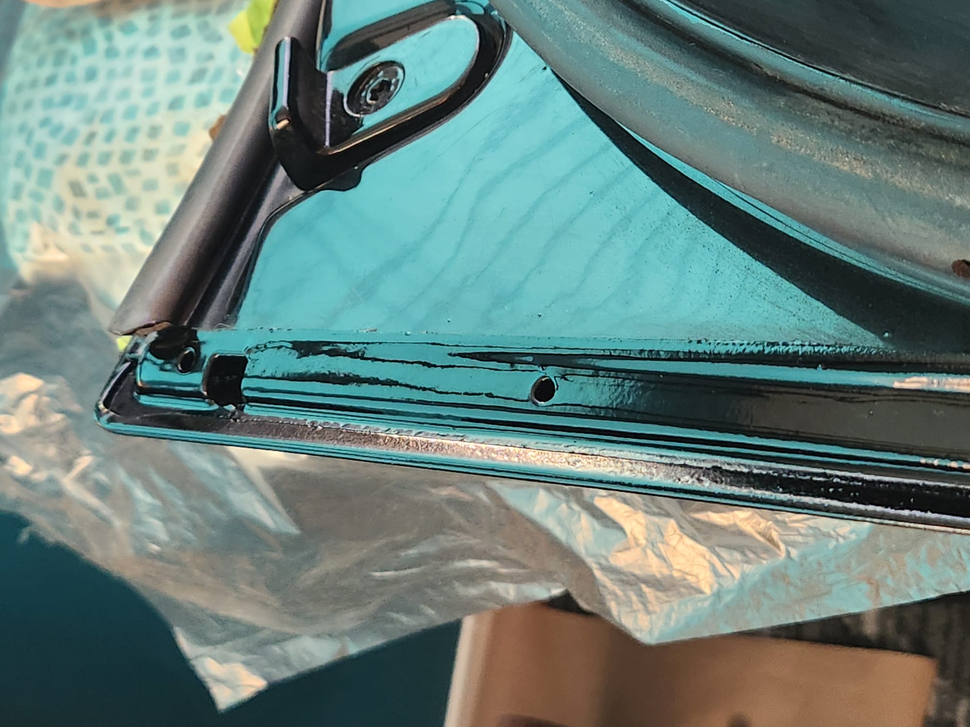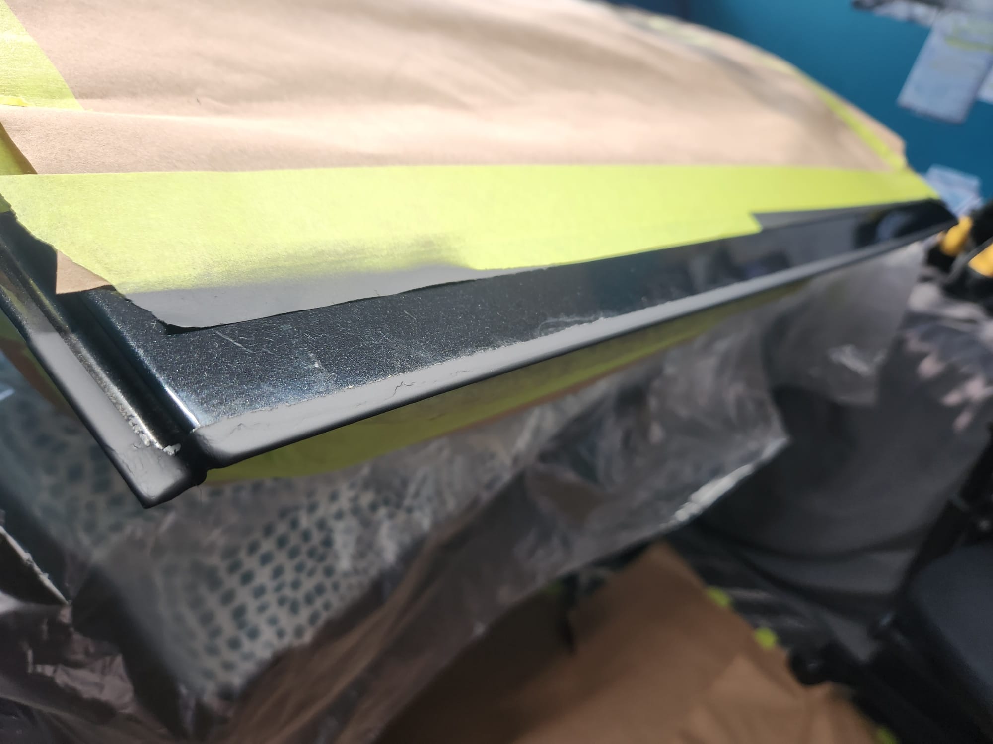 - A bit of the clear coat run near the left that I couldn't get out is visible below. The sanding wore down the edge much faster than the front facing area. Definitely would recommend extra care when sanding around an edge.