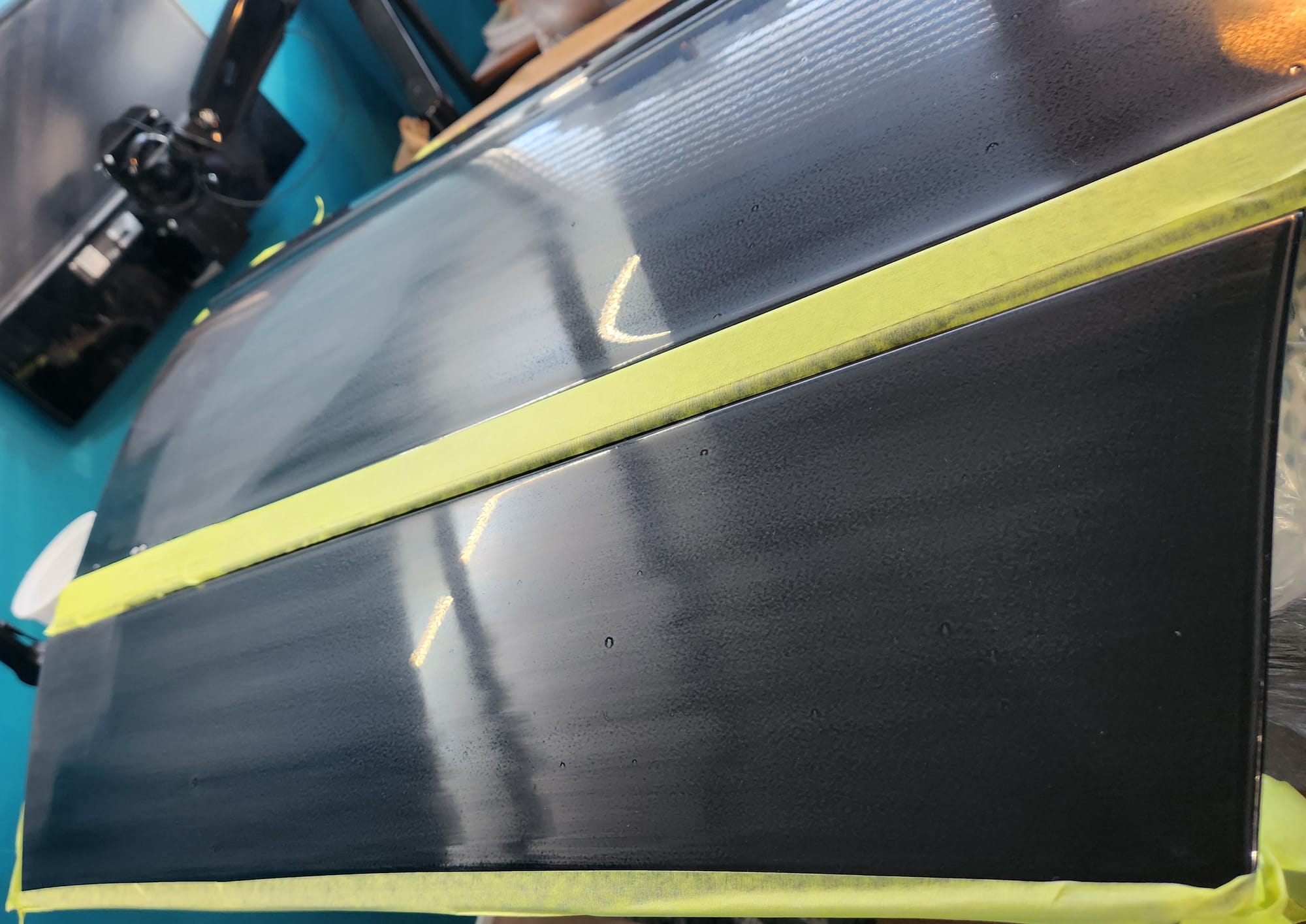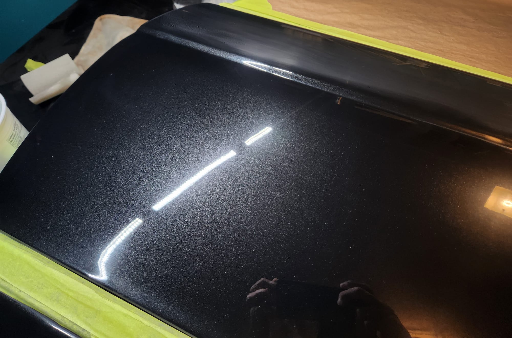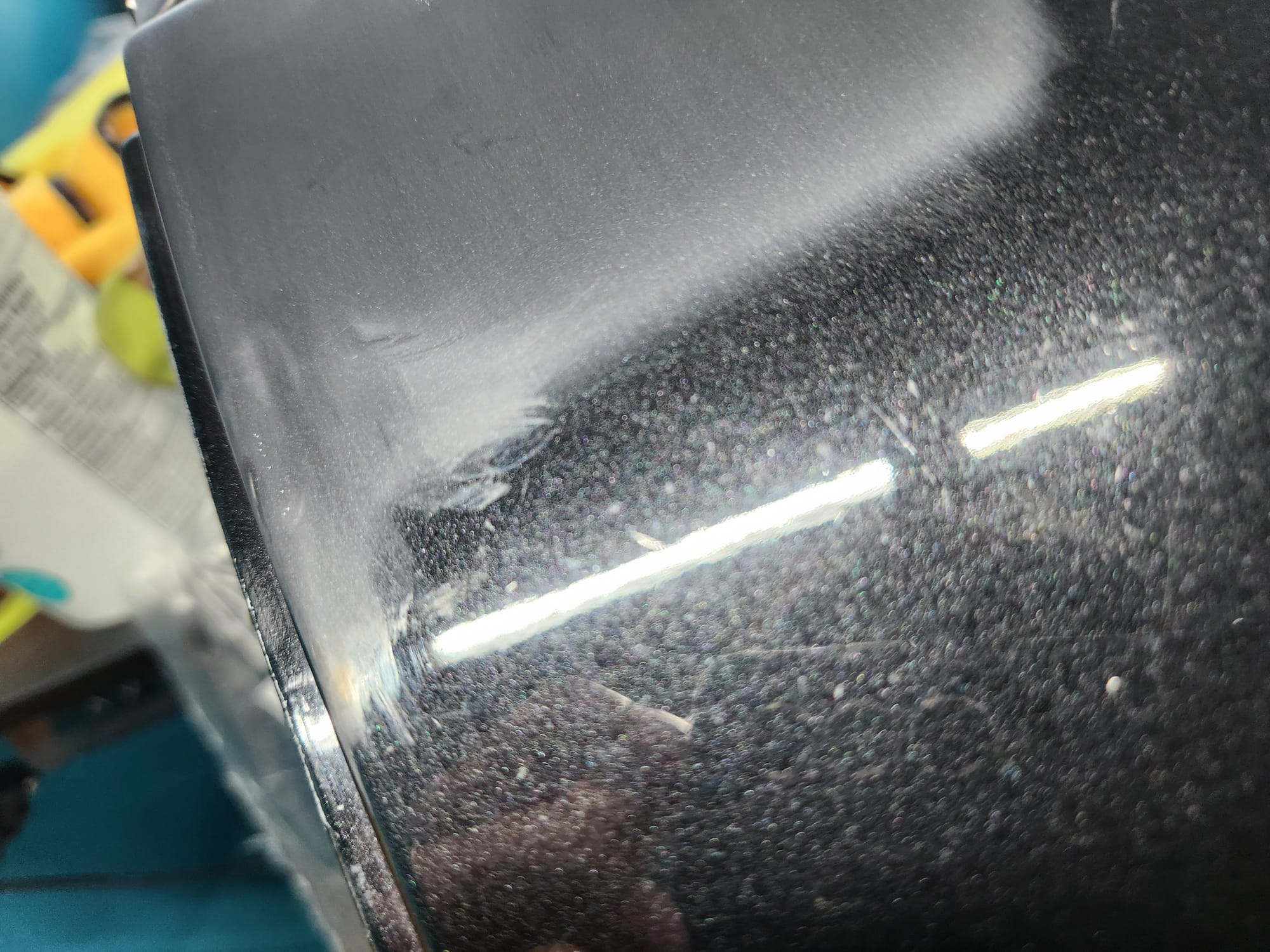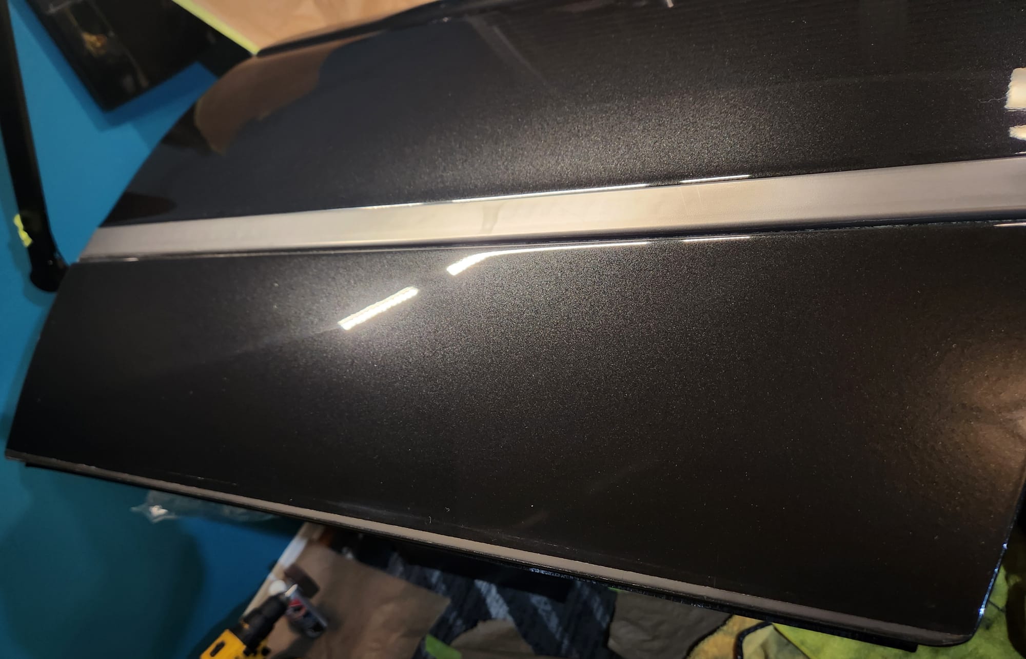 - A bit of the clear coat run near the left that I couldn't get out is visible below. The sanding wore down the edge much faster than the front facing area. Definitely would recommend extra care when sanding around an edge.