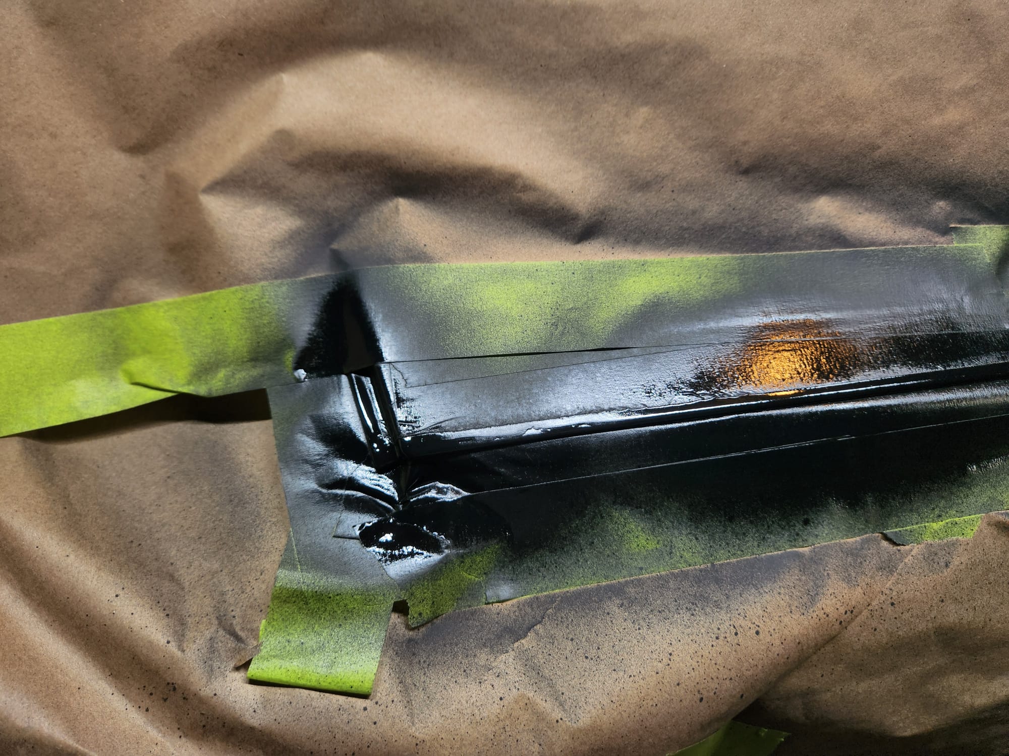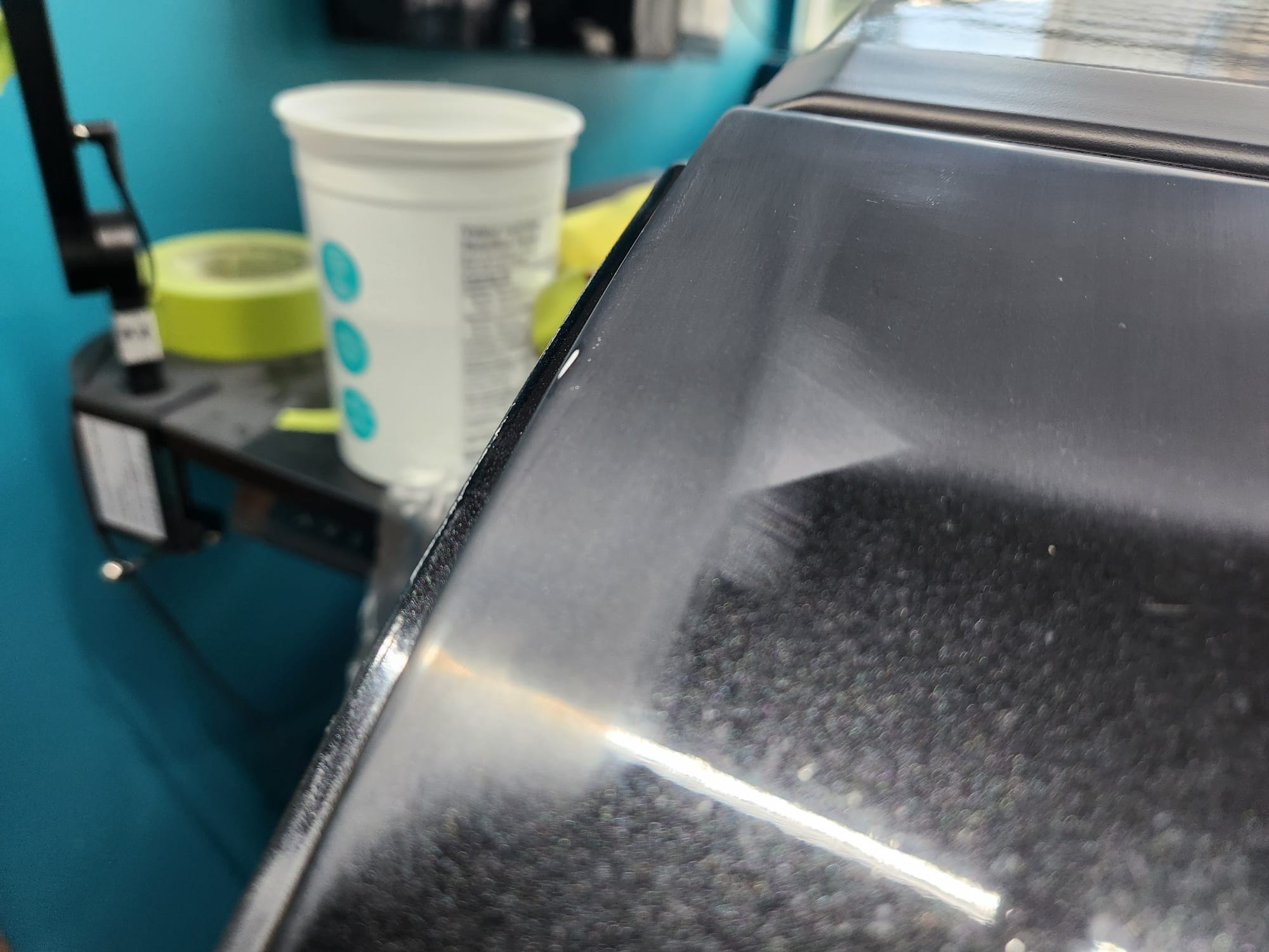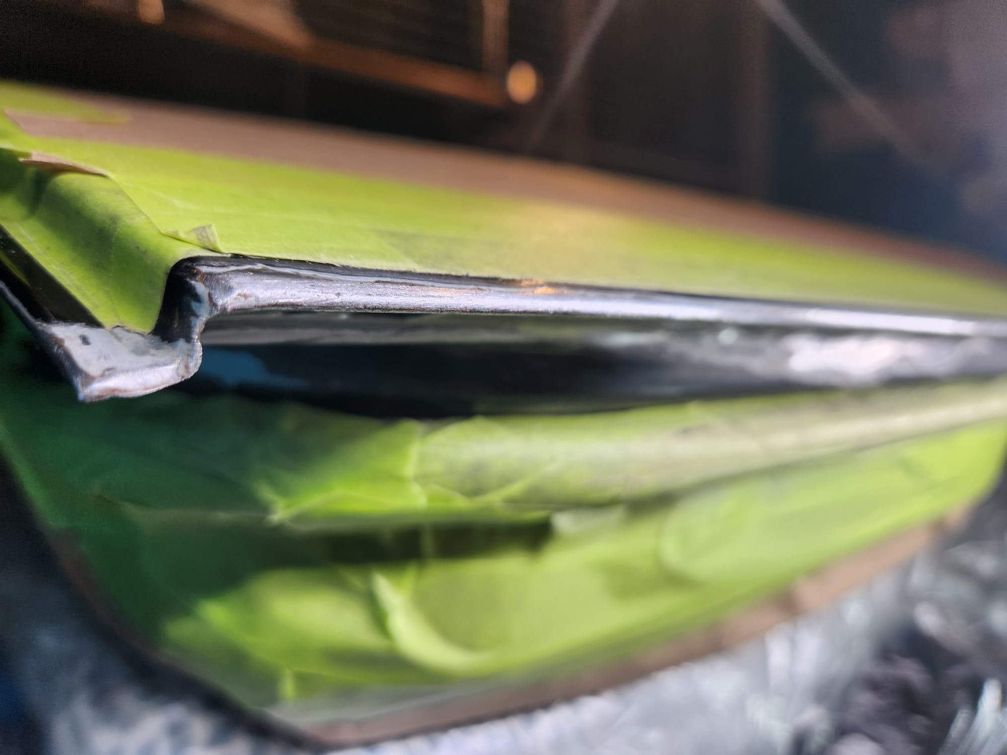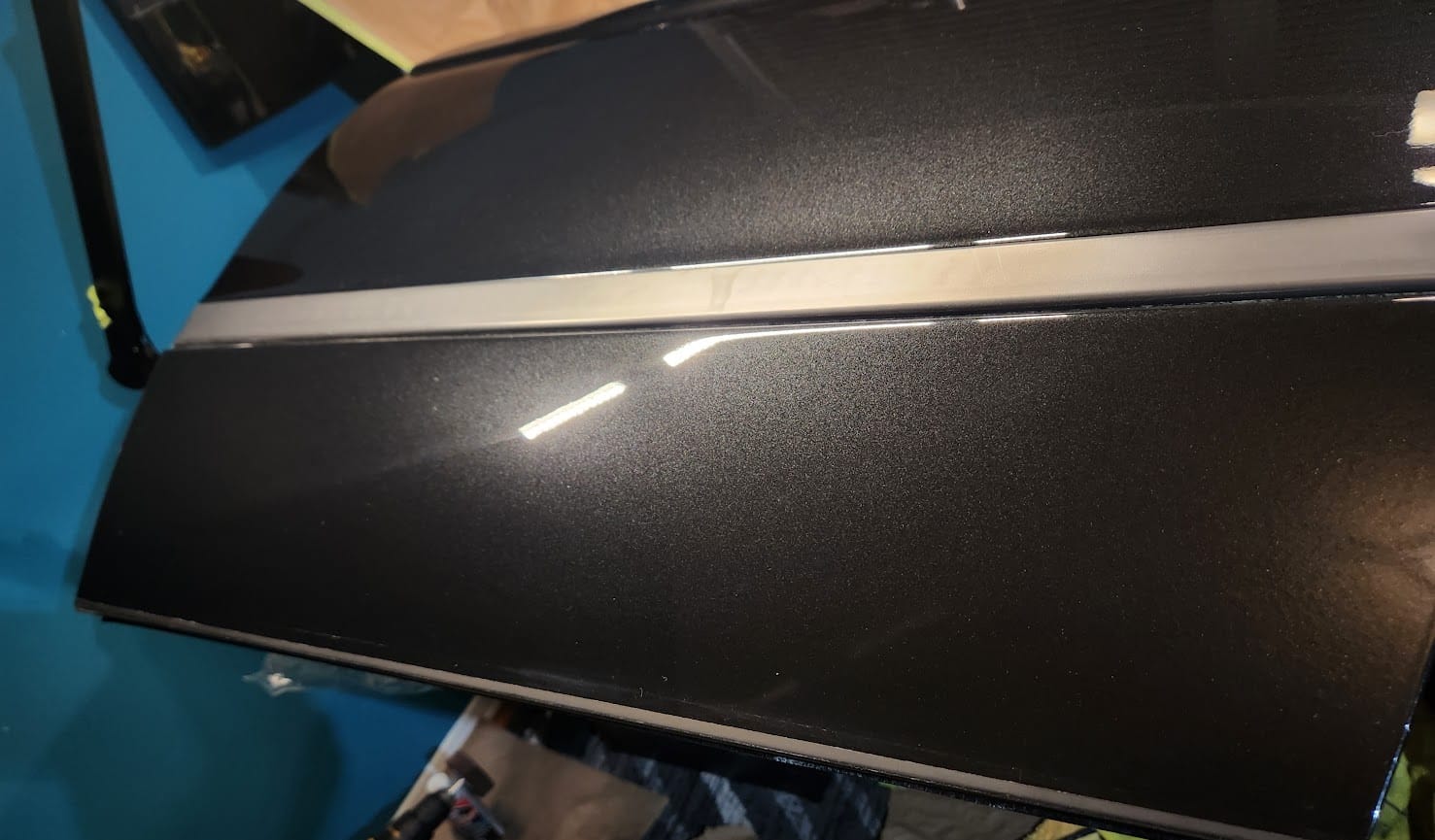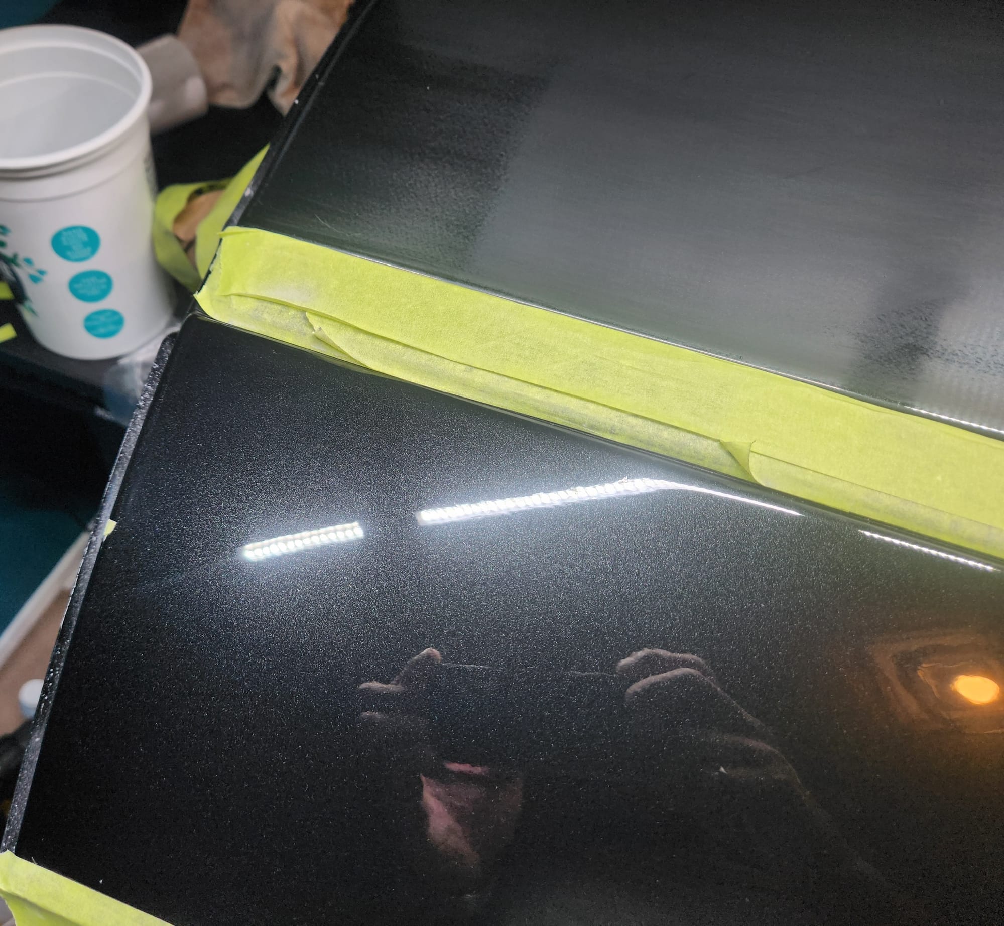- A bit of the clear coat run near the left that I couldn't get out is visible below. The sanding wore down the edge much faster than the front facing area. Definitely would recommend extra care when sanding around an edge.
