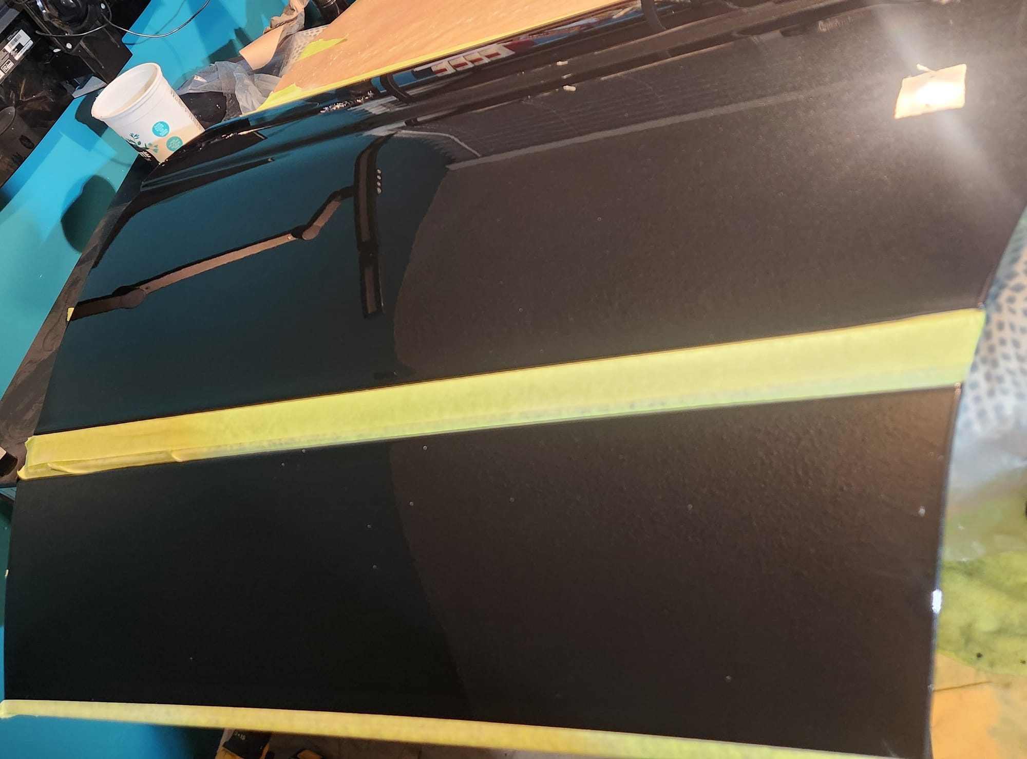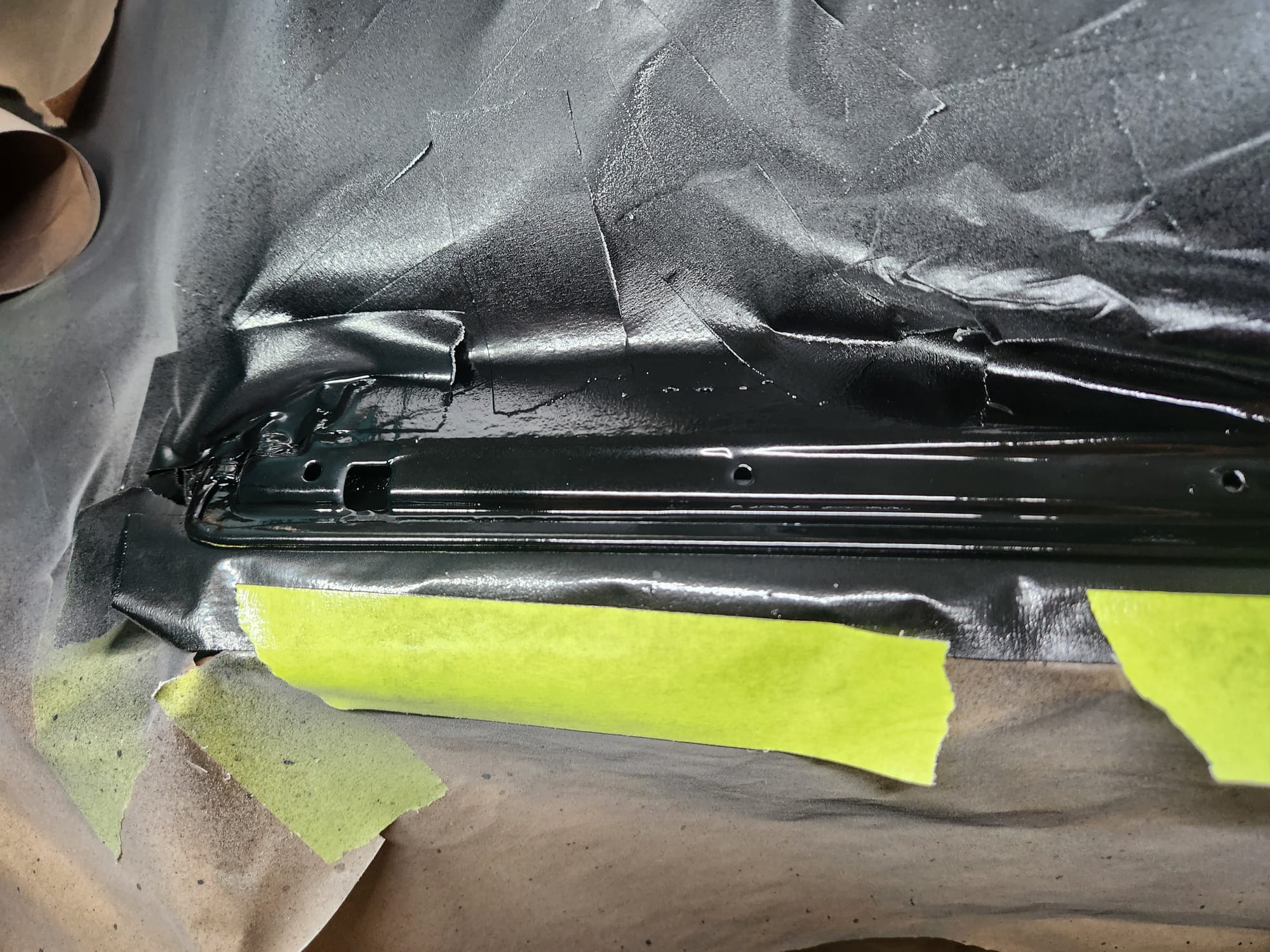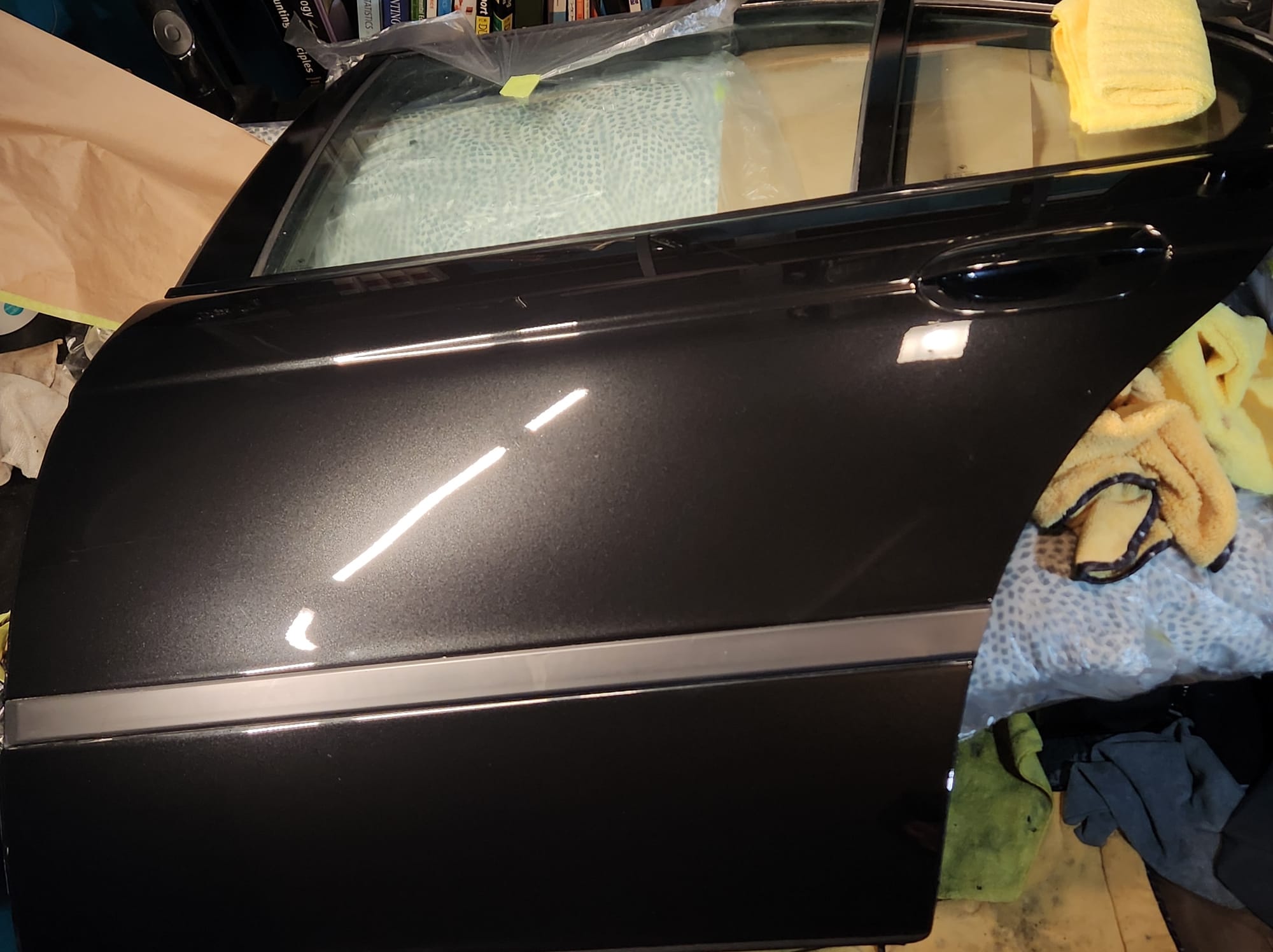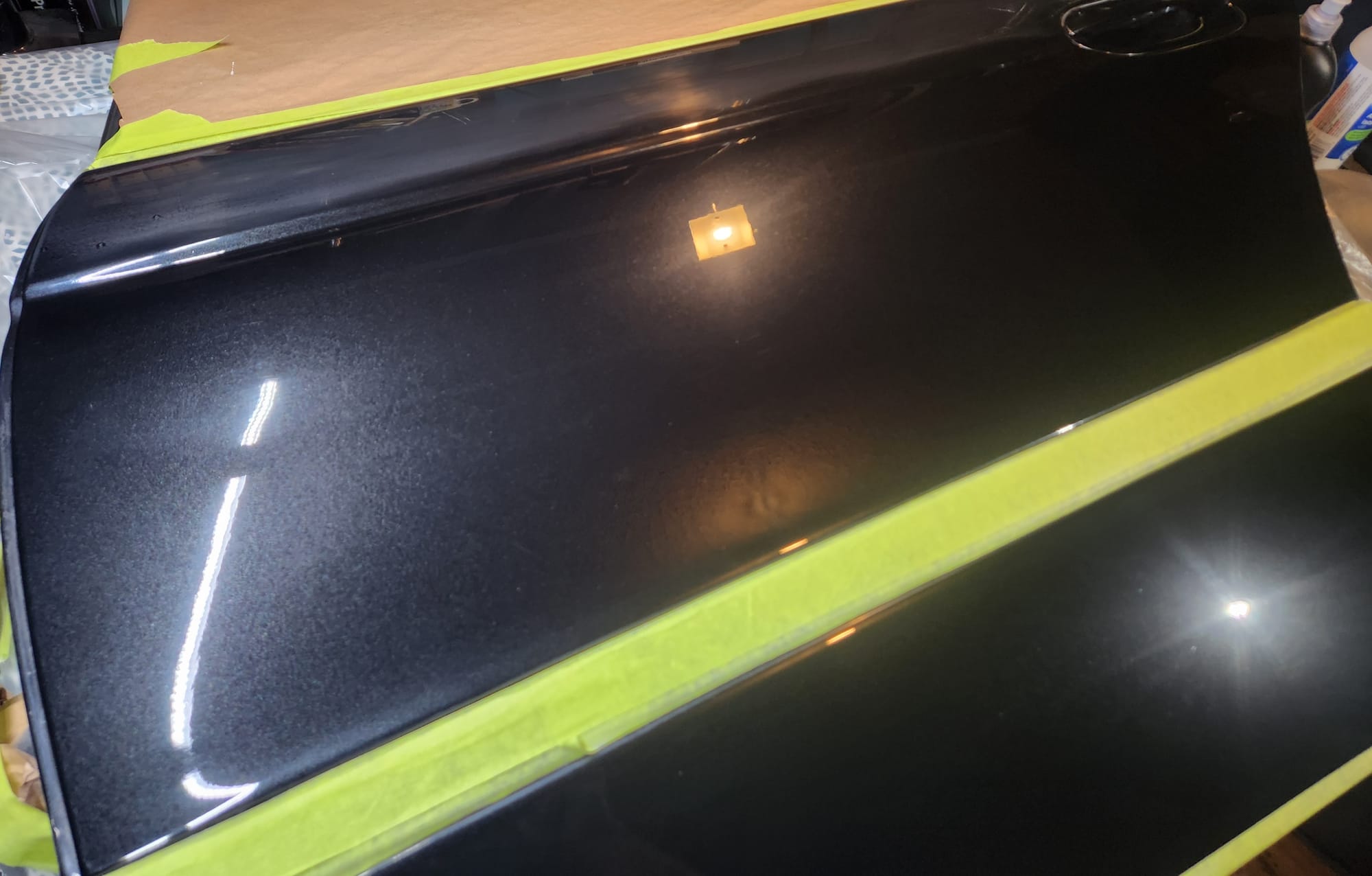 - The starting point. The scratches were from me mishandling this very heavy door. Note the run on the clear coat.