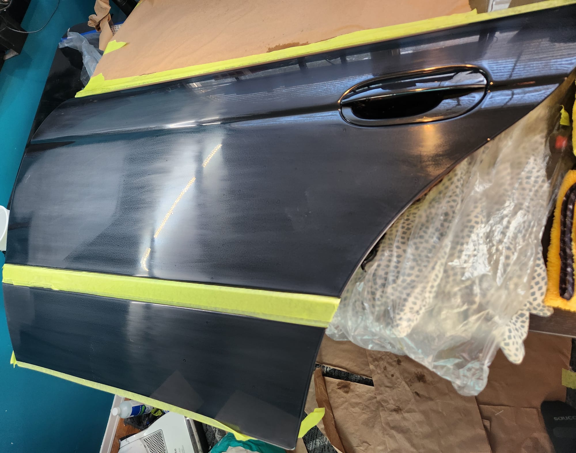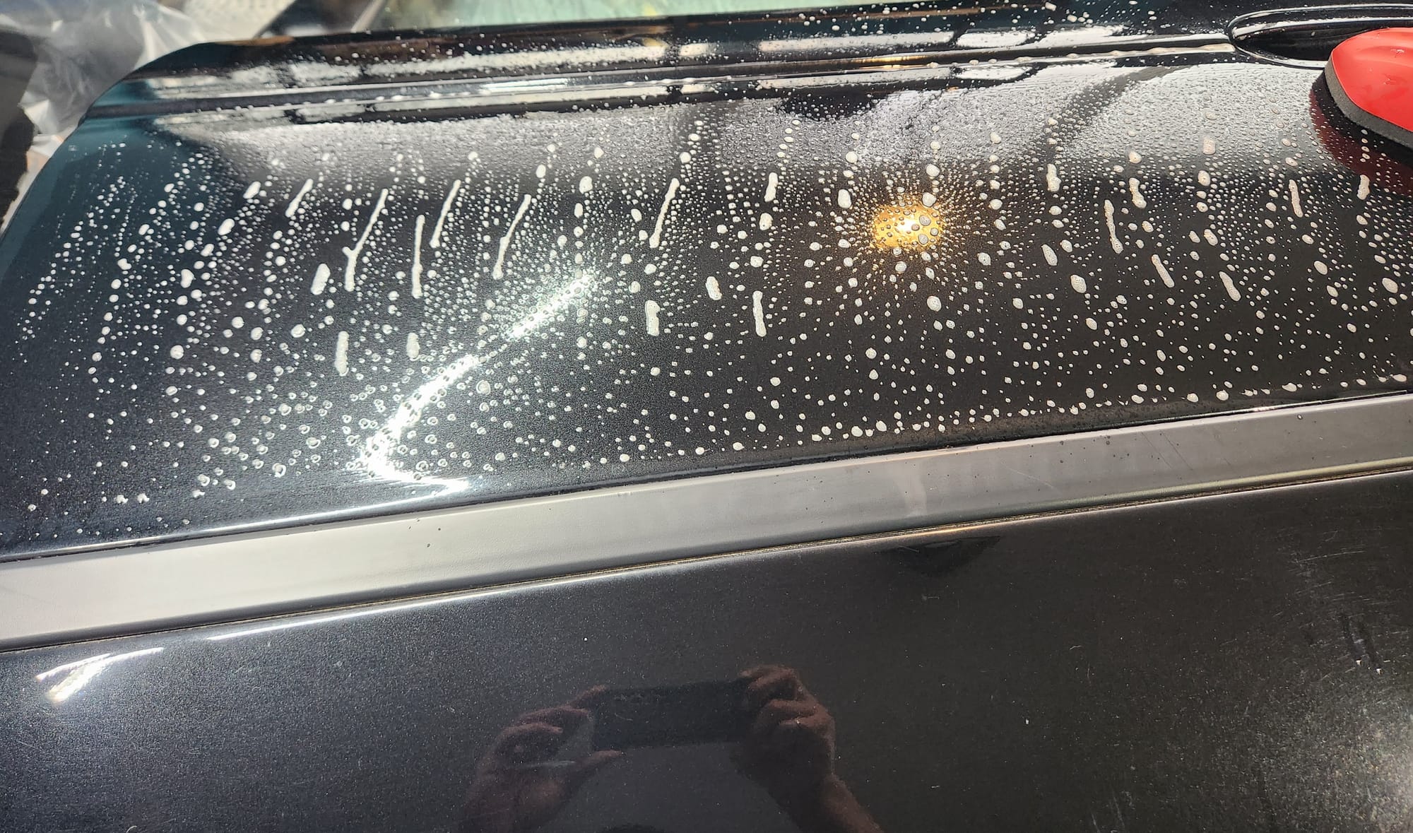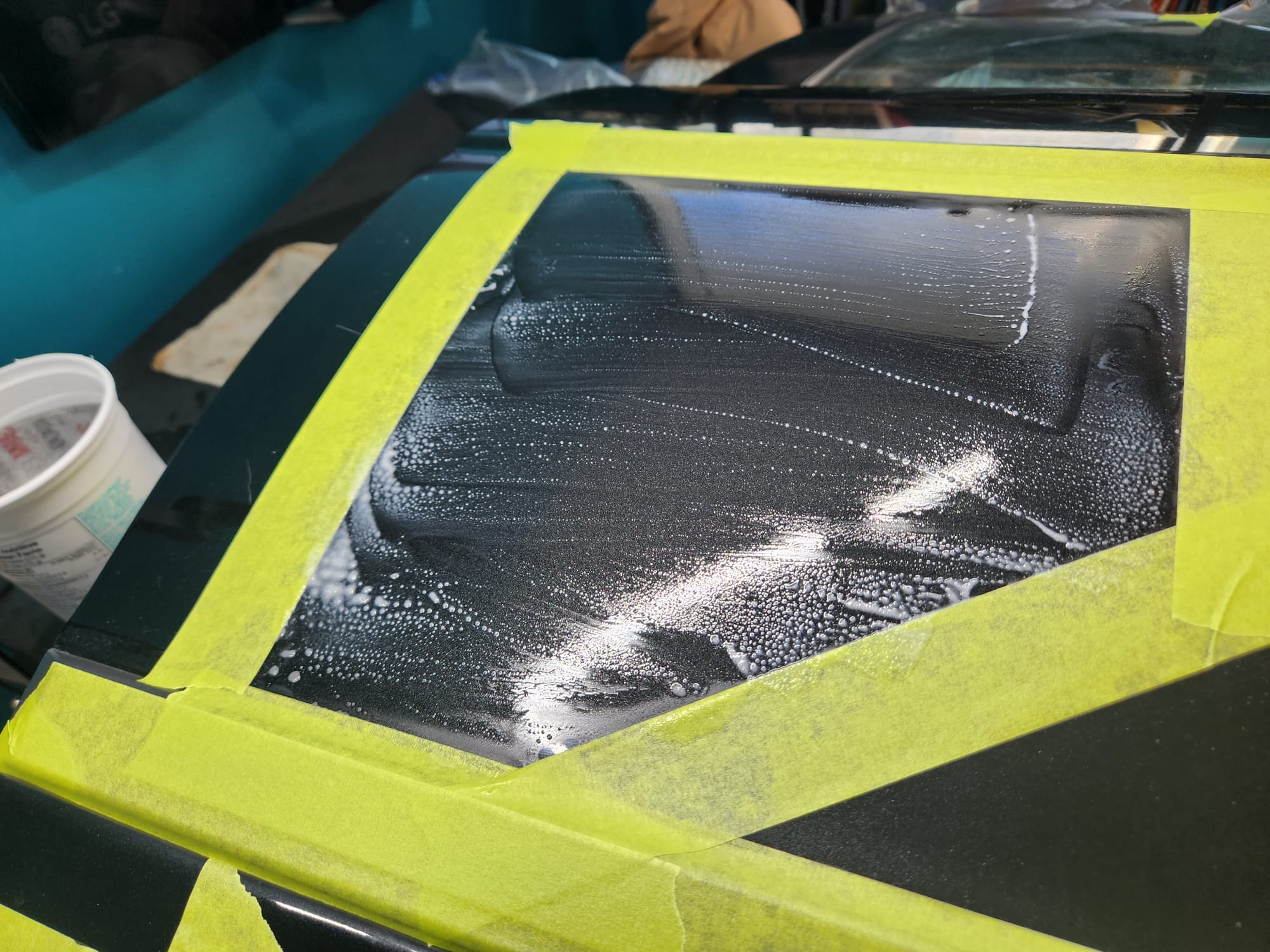 - I cleaned and wiped the door to start. Then claybarred it with soapy water.