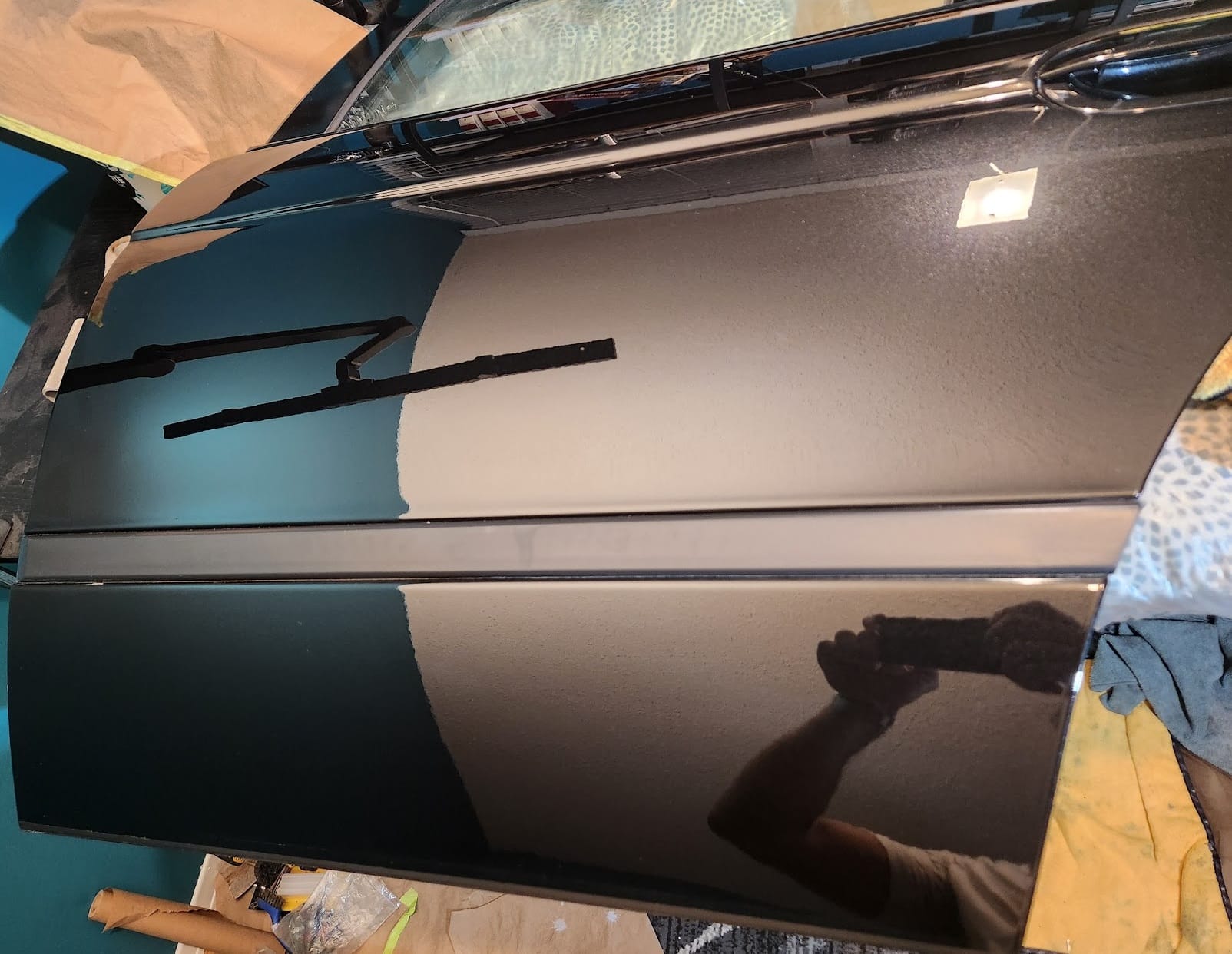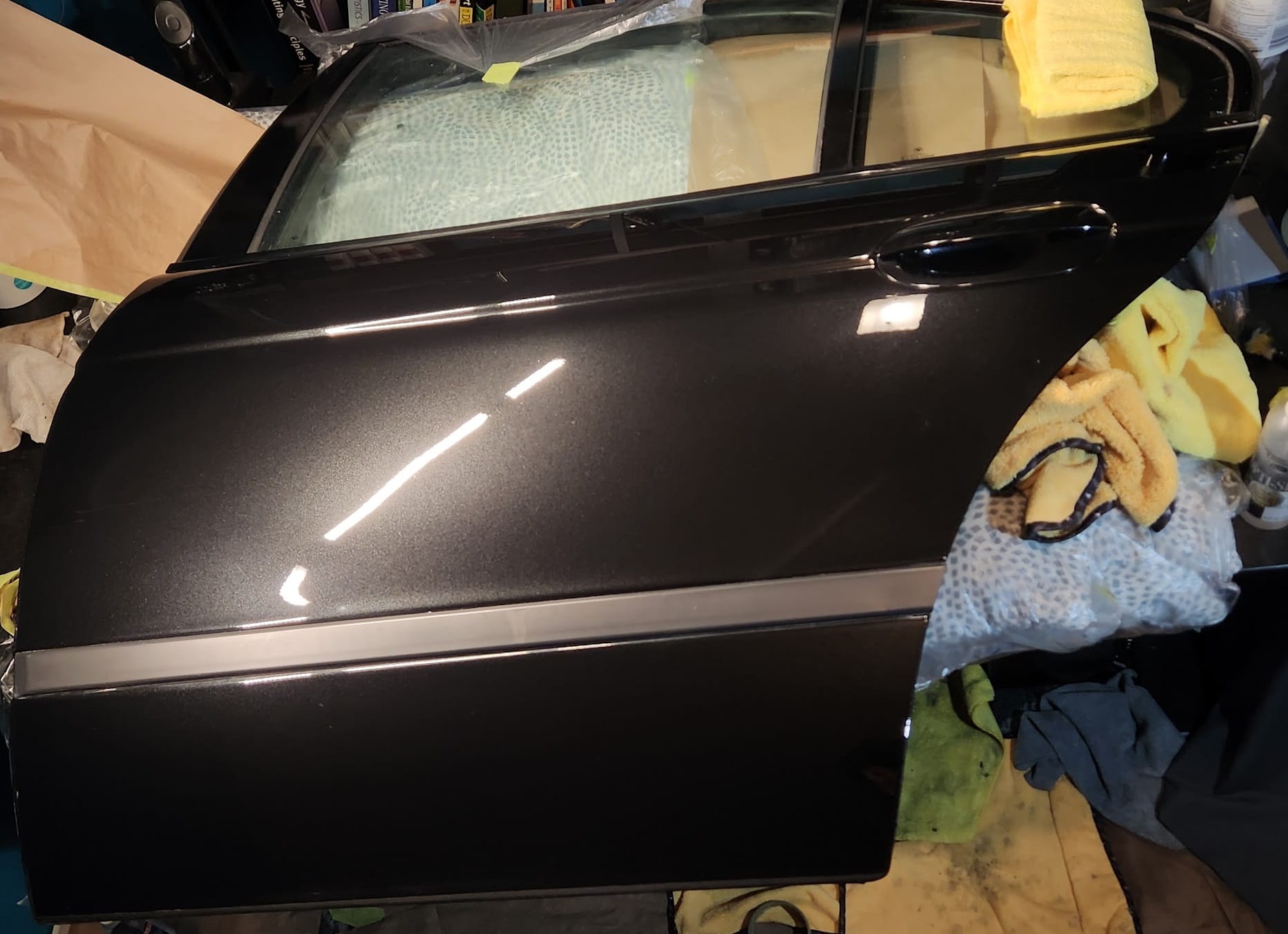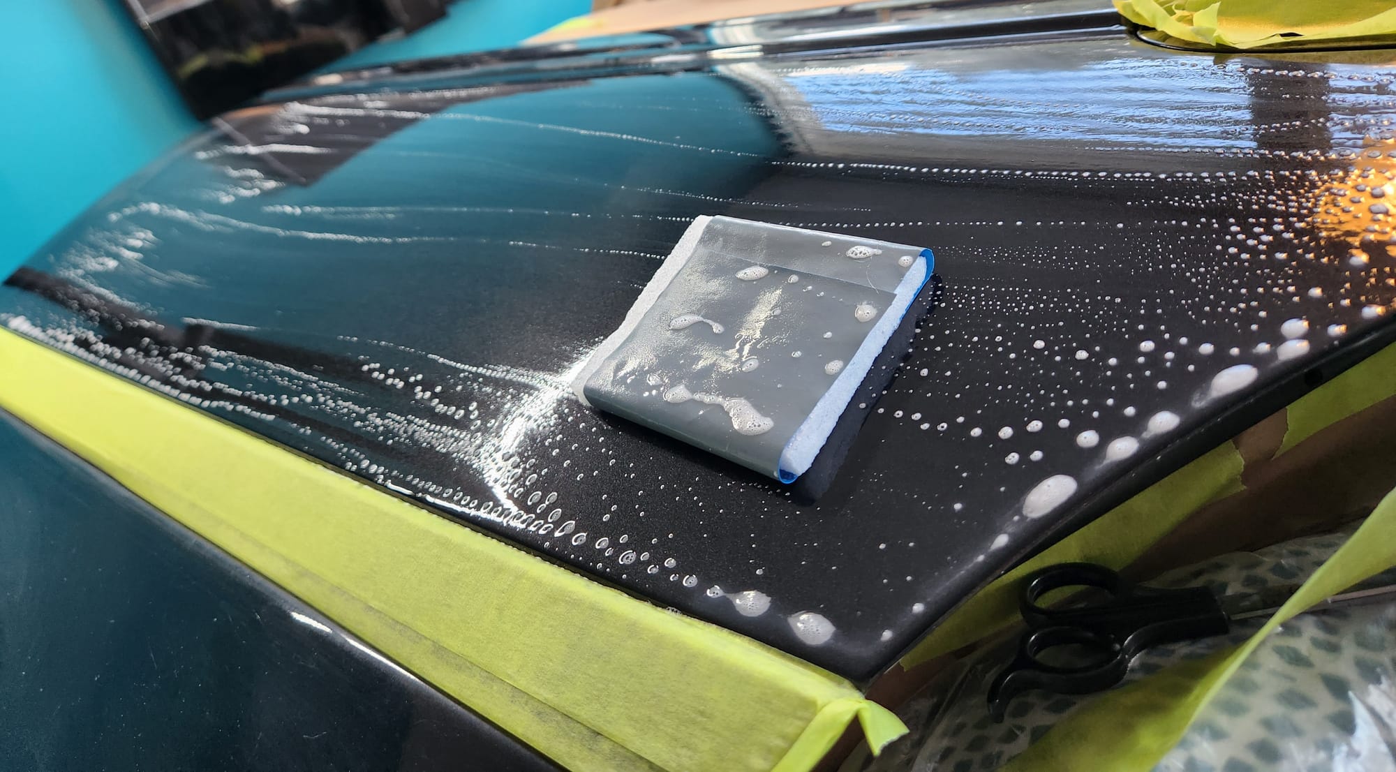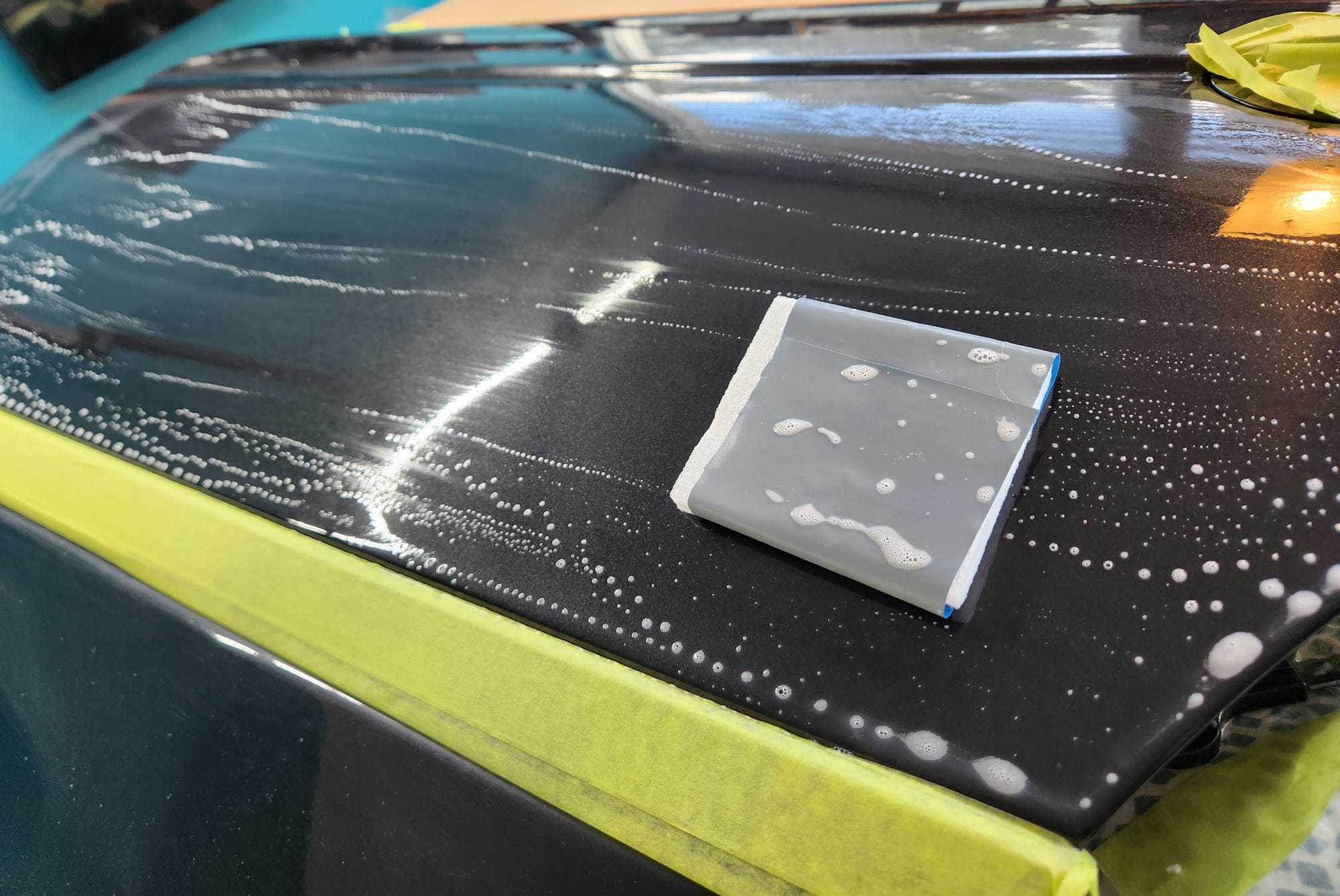 - I cleaned and wiped the door to start. Then claybarred it with soapy water.